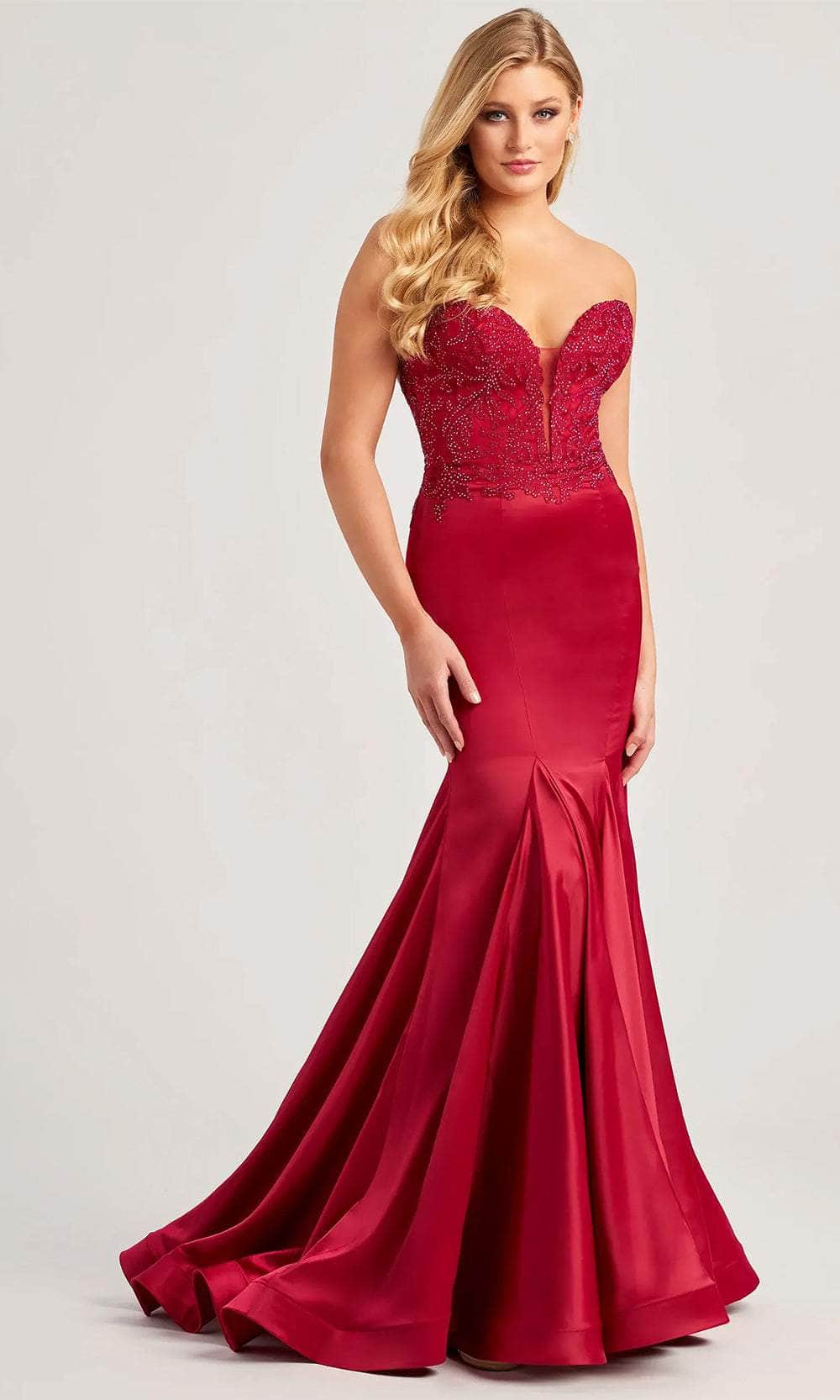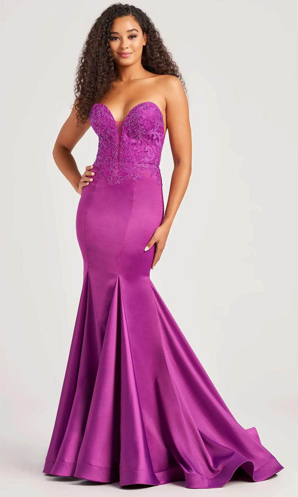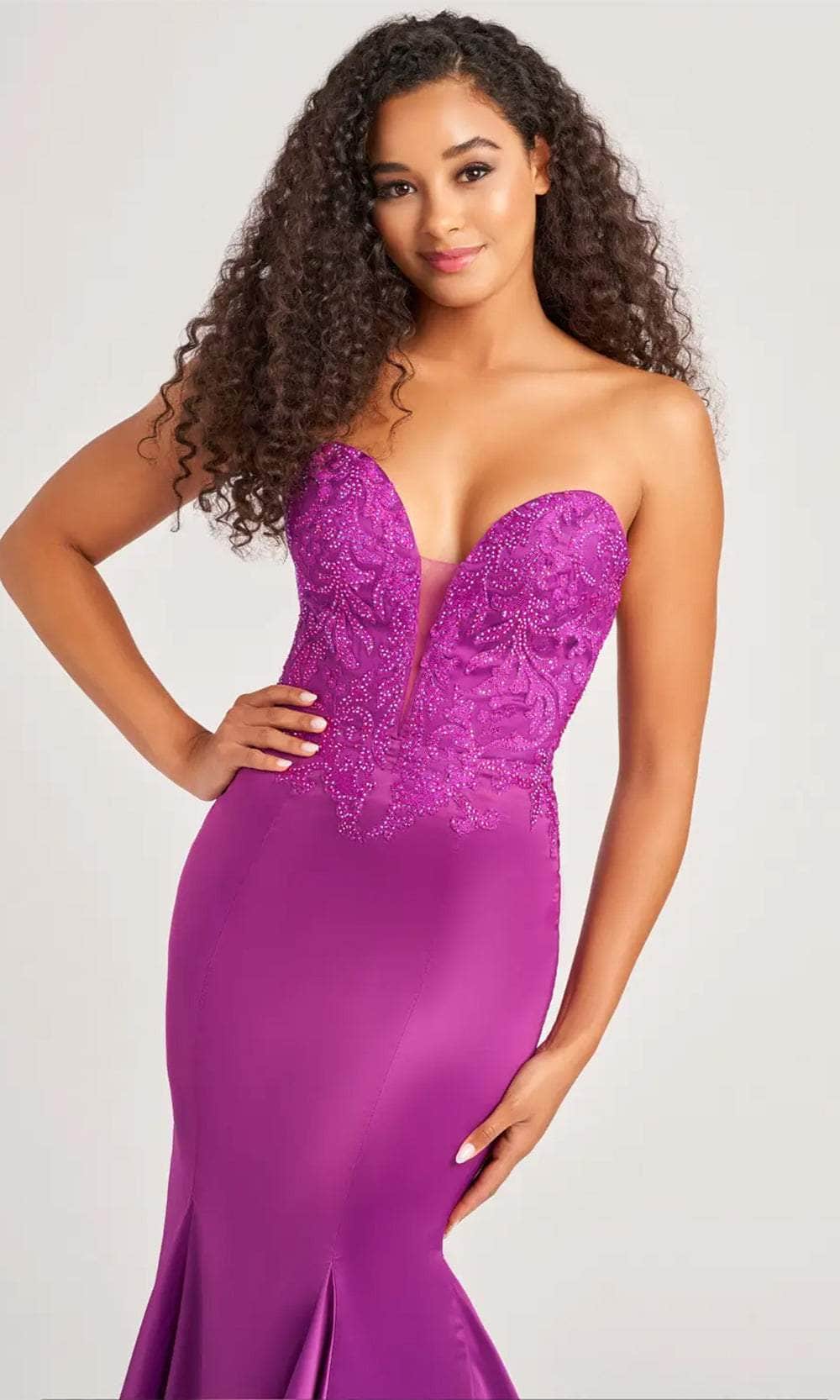 Capture affection in the enchanting Colette By Daphne CL5116 ensemble, where each detail whispers tales of grace and sophistication. Highlighting a bodice embellished with beaded lace appliques and crafted with precision tailoring lines, this gown showcases a strapless style with a plunging sweetheart neckline. The midrise open back adds an enticing element, and the gown completes its allure with a godet skirt, a horsehair hem, and a court train. The set also includes detachable spaghetti straps, allowing you to reveal the goddess within with this divine Colette By Daphne CL5116 creation. Models are wearing the Amethyst, Teal, and Wine colors.