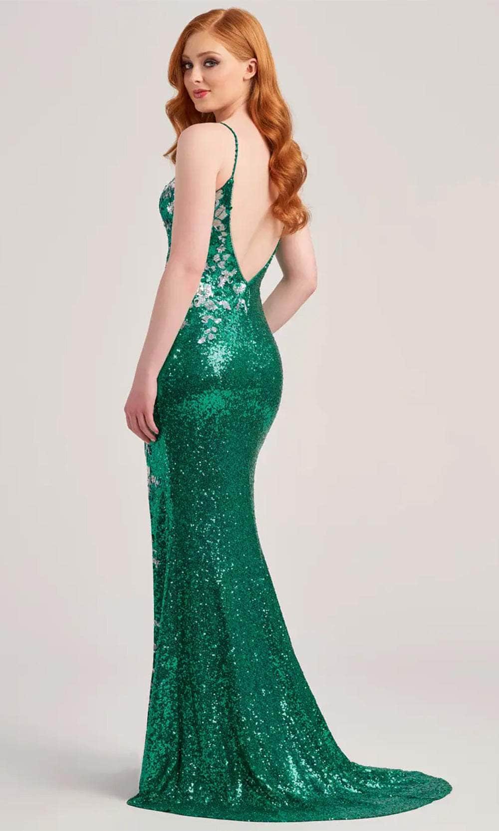 Radiate like a celestial being in this stunning and luminous Colette By Daphne CL5196 ensemble. Crafted with meticulous tailoring lines in an all-over sequined silhouette, this gown features beaded spaghetti straps cascading down the v-neckline bodice. Sequined floral embroidery adorns the bodice, while the open V-back adds grace to the ensemble. The mermaid skirt concludes with a high front slit and a sweep train. Capture attention with this mesmerizing and breathtaking Colette By Daphne CL5196 creation. Models are wearing the Navy Blue/Silver, Jade/Silver, Gold/Silver, Fuchsia/Pink, and Amethyst/Lilac colors.