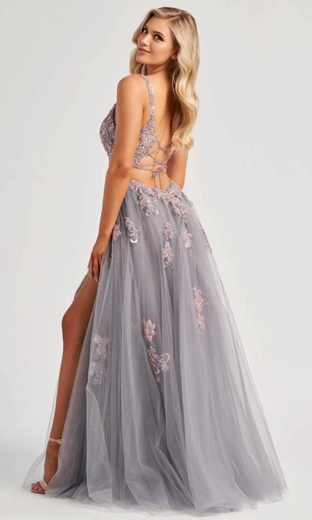 Elevate your appearance with the classic elegance of the Colette By Daphne CL8130 gown. Made from a luxurious blend of tulle and jersey, its tailored design beautifully highlights the wearer’s figure. The spaghetti straps and deep V-neckline accentuate the collarbones and décolletage. Delicate sequin and beaded embroidered appliqués embellish the sheer corset bodice, adding a luxurious touch. The low lace-up back enhances the wearer’s posture while creating a striking visual. The A-line skirt, featuring a high slit and sweeping train, provides an elegant and fluid silhouette. The Colette By Daphne CL8130 is a gown that embodies timeless beauty and sophisticated style. Model is wearing the Platinum/Blush colors.
