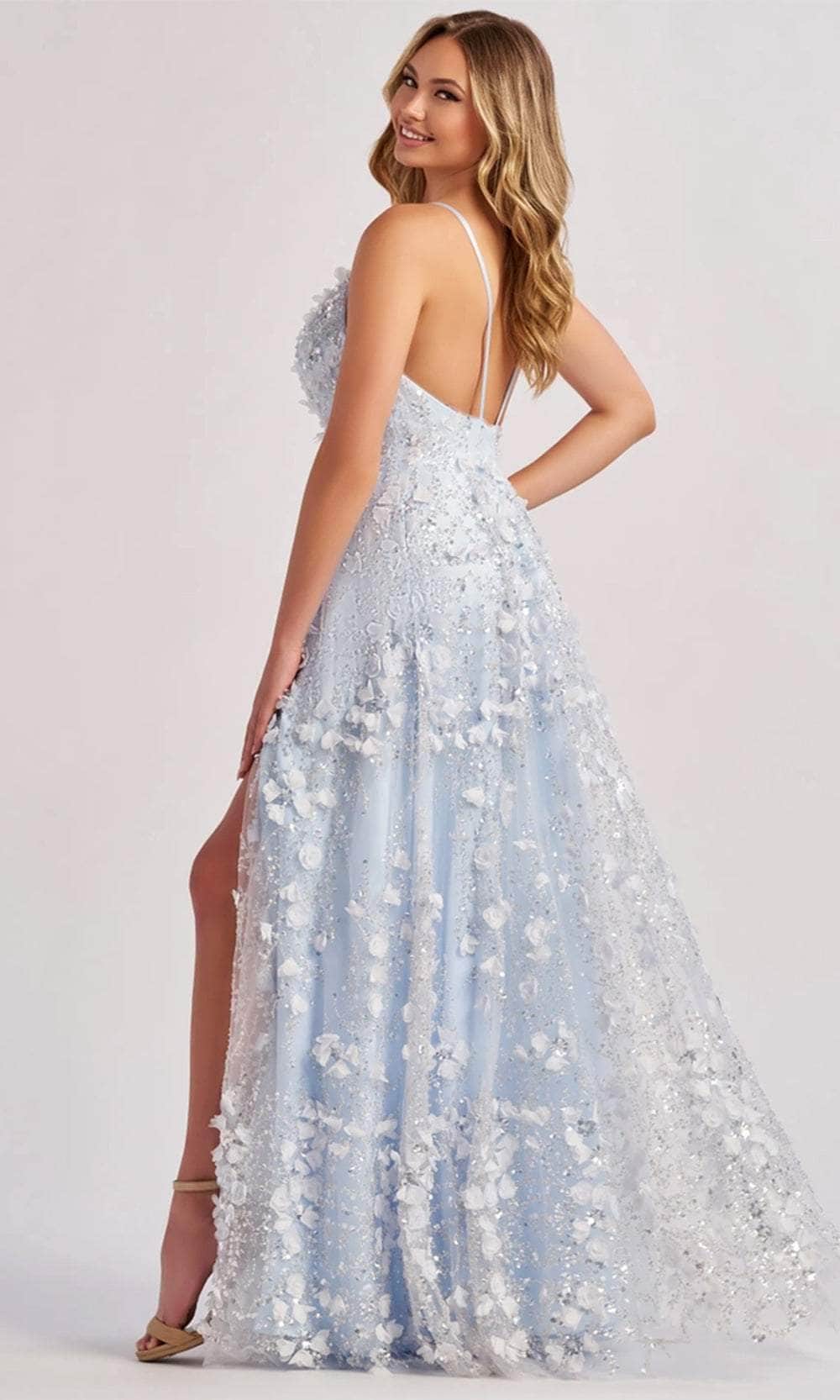 Exude grace and beauty in the mesmerizing Colette By Daphne CL8525 gown, which perfectly combines luxury and style. Made with intricate embroidered sequins and three-dimensional flowers, this gown reflects exquisite craftsmanship. The spaghetti straps and sweetheart neckline beautifully showcase the collarbones and décolletage. The midrise back enhances the wearer's posture and adds a dramatic flair. The A-line skirt, adorned with a high slit and sweeping train, flows gracefully and sophisticatedly. Shine in the spotlight with the captivating Colette By Daphne CL8525 gown. Models are wearing the Peachy Pink and Ice Blue colors.