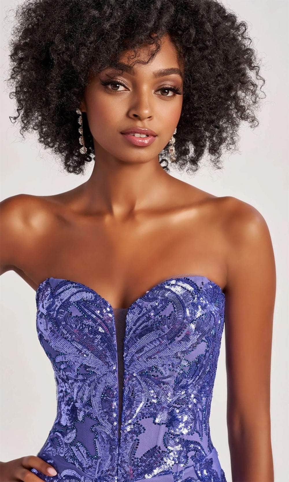 Unveil the perfect mix of contemporary flair and classic beauty with the exquisite Colette By Daphne CL8680 gown, crafted for the woman who isn’t afraid to stand out. Made from luxurious sequin stretch mesh, this gown exudes sophistication and allure. The strapless silhouette showcases a stunning plunging sweetheart neckline, while the corset bodice shapes your figure beautifully. The intricate sequin embellishments throughout create a captivating display of detail, ensuring you dazzle under the lights. The midrise back offers a touch of drama while revealing a hint of skin, and the mermaid skirt includes a high slit that provides a glimpse of leg with every stride. The gown culminates in a graceful sweep train, leaving a memorable impact. This Colette by Daphne CL8680 creation is perfect for any grand occasion, where you’ll exemplify sophistication and elegance. Model is wearing the Periwinkle color.