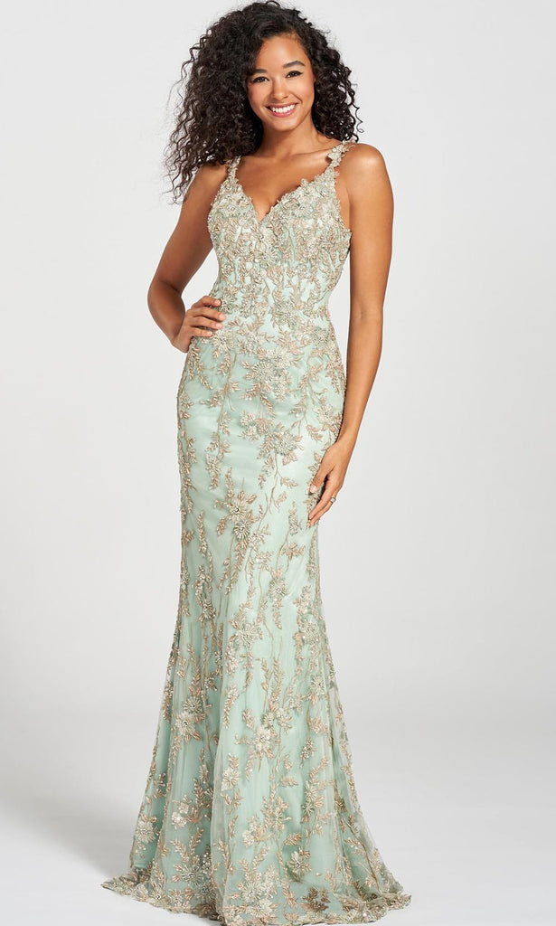 Sparkling with sequins, its blouson bodice features a v-neckline hanging from spaghetti straps. Defined with a v-open back, the slim skirt has a sexy high slit as it waterfalls into a sweeping train. Be an emblem of sophistication in this Sherri Hill masterpiece. Find more evening dresses! Whether your style is modern trendy or timeless classic, Mon Cheri will clothe with poise, elegance and grace for your momentous occasion. Model is wearing the Silver color.