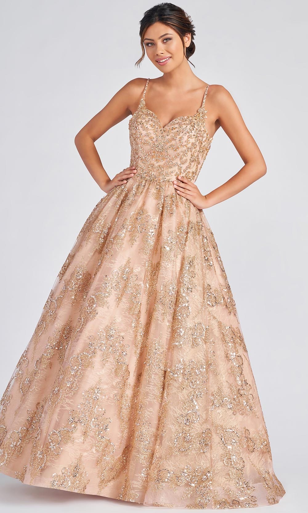 Shine like a star in this Colette for Mon Cheri CL12244. Intricately embellished throughout, this sleeveless beauty stands out in a sweetheart neckline supported by spaghetti straps which leads to the open back. A lace-up strap and zipper closure secure the fitted bodice. The skirt is tailored in a ballgown silhouette and is detailed with a horsehair hem. Be ready to mesmerize the night in this Colette for Mon Cheri dress. Whether your style is modern trendy or timeless classic, Mon Cheri will clothe with poise, elegance and grace for your momentous occasion.