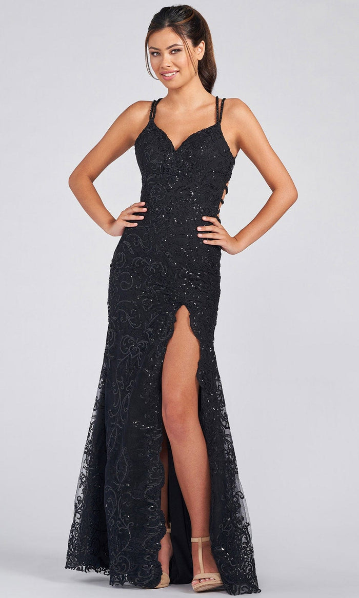 Be ready to catch everyone's eyes in this creation by Colette for Mon Cheri CL12280. Showcases a sleeveless and V neckline, this gown has sequined lace embroidery on the bodice that shimmers beautifully. The open back is stringed with a beaded embellished double spaghetti strap that creates a crisscross design. This full length sheath skirt features a scalloped lace slit to perfectly elongate your sexy leg. Mesmerize the crowd with your sophisticated flair in this Colette for Mon Cheri masterpiece. Whether your style is modern trendy or timeless classic, Mon Cheri will clothe with poise, elegance and grace for your momentous occasion.