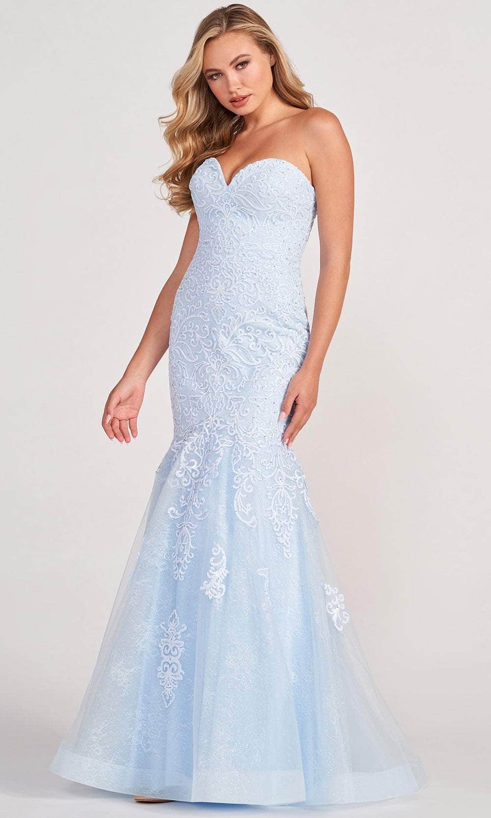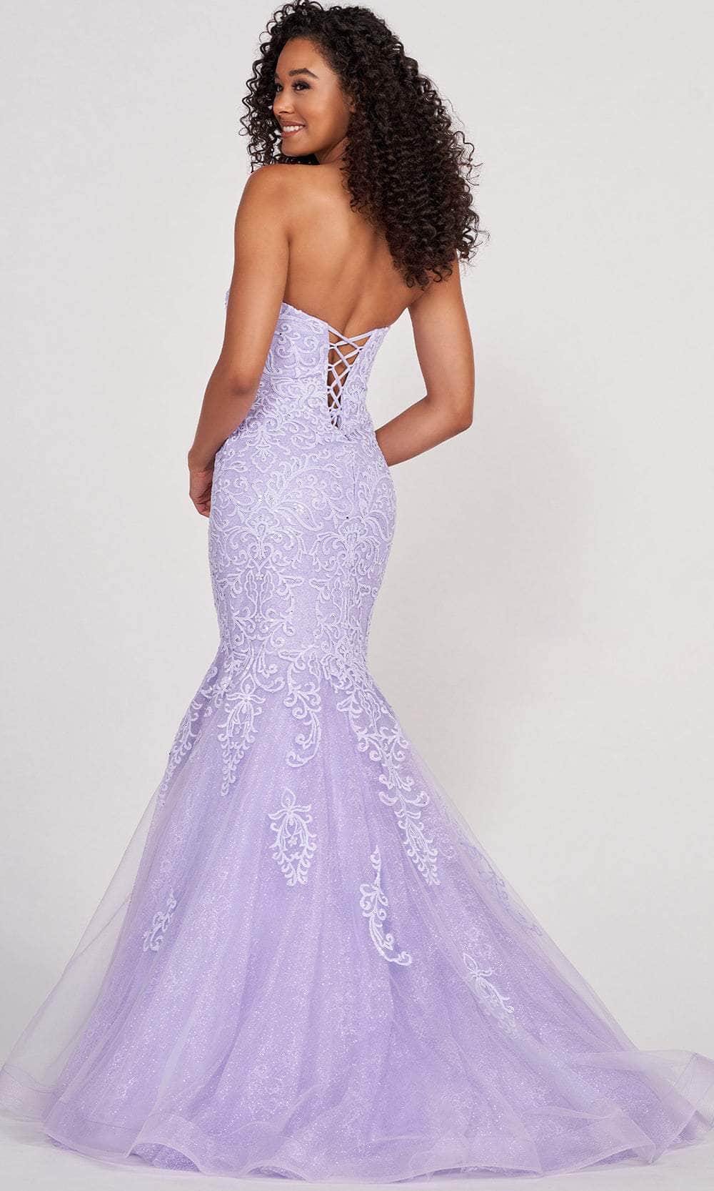 Embrace a radiantly romantic look in the flatteringly feminine gown from Colette For Mon Cheri CL2005. This gorgeous full-length gown sparkles in a strapless sweetheart neckline with embroidered lace appliques on the fitted bodice that goes down the hips, followed by glittered mermaid skirt in layers of tulle. This stunning ensemble finishes with a dramatic sweep train and a lace-up back closure. Embrace a style that is immaculately striking as you glam up for your event in this Colette For Mon Cheri CL2005 creation. Models are wearing Light Blue, and Lilac colors.