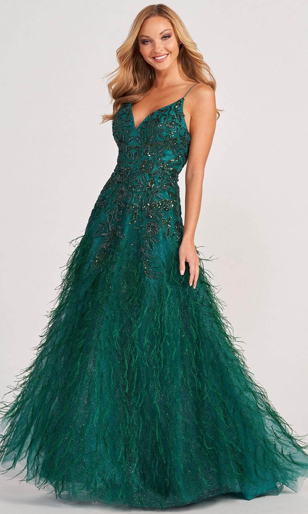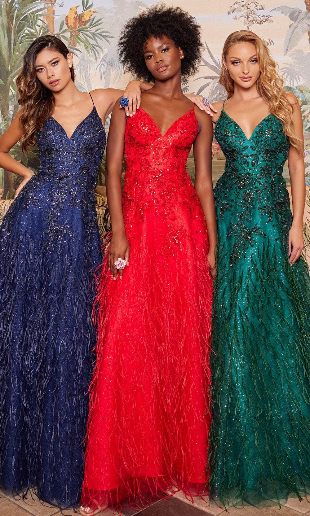 Claim your spot as the darling of the ball with this stunning piece by Colette for Mon Cheri CL2044 creation. Proceed confidently wearing this piece featuring a sleeveless V-neckline embellished with beads and glitter that complements the feather fringes along the A-line skirt as it ends in a floor-length hem. You will be the envy of the night in this fantastic long evening dress with striking details by Colette for Mon Cheri CL2044 creation. Models are wearing Red, Navy Blue, and Spruce colors.