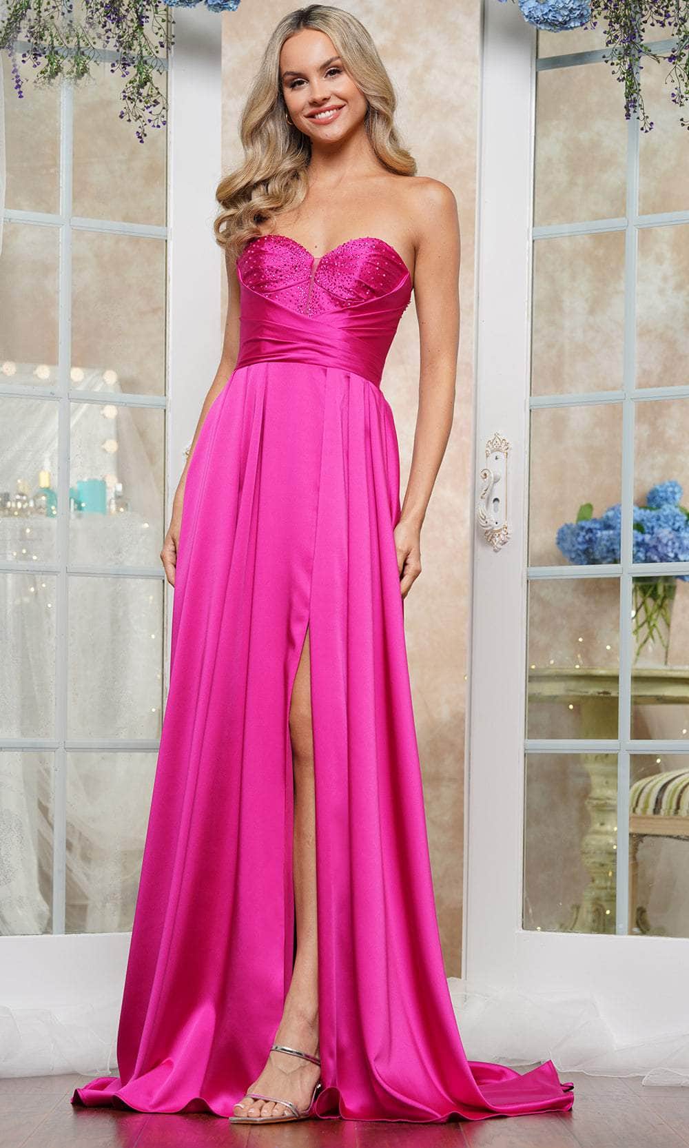 | Details: | Strapless, Beaded, Pleated Bodice, High Slit, Midrise Lace-Up Back, Sweep Train |