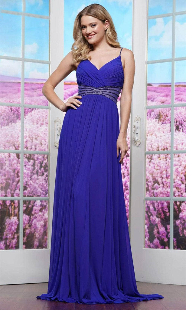 Capture attention in the Colors Dress 3441 prom gown, designed to bring drama and charm. The gown features a power mesh silhouette that makes a stunning impression. Spaghetti straps lead to a V-neckline and a beautifully ruched bodice, while a sheer beaded waistband and a V-open back enhance the allure. The A-line skirt, complete with a sweeping train, ensures you’ll make a memorable entrance. The Colors Dress 3441 prom dress is your ultimate pick for a night of elegance. Models are wearing the Black, Royal, Aqua, and Magenta colors.