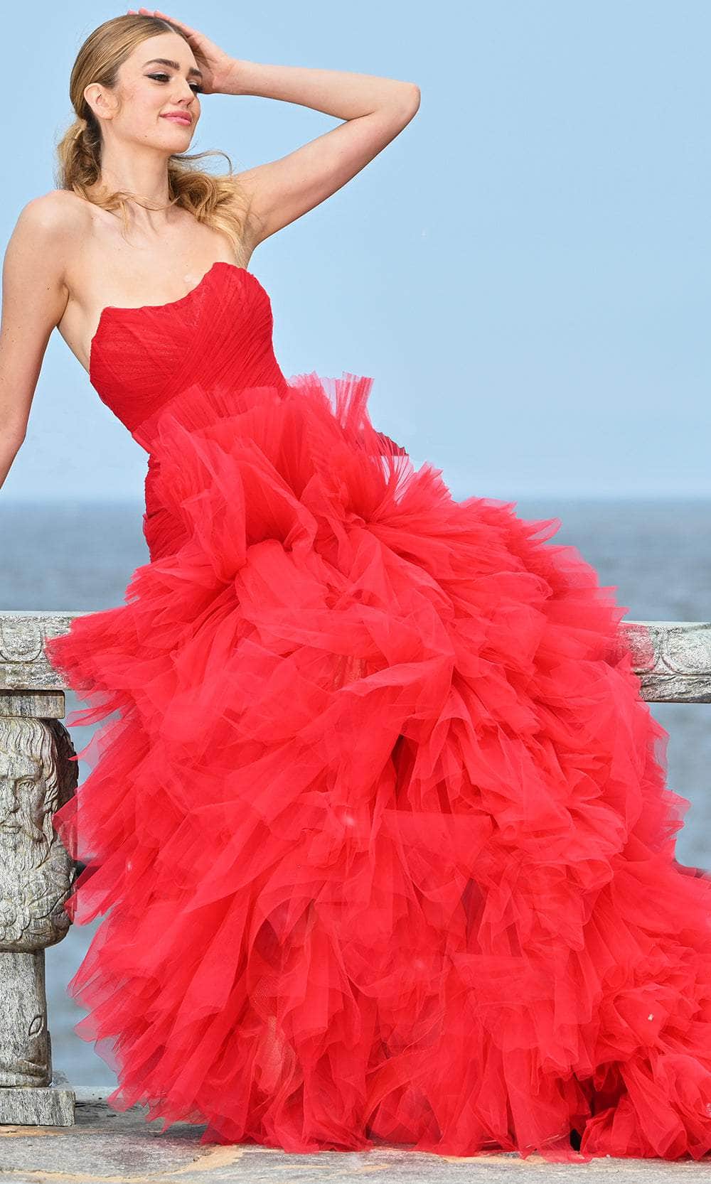 Make a grand entrance and leave everyone in awe with the Colors Dress 3631 style. Captivatingly designed in a strapless, this gown flaunts directional ruching across the fitted bodice that creates a sophisticated texture and enhances your natural curves. Additional highlights are the scoop neckline and a midrise back with customizable lace-up tie detailing. The mermaid skirt flares dramatically with layers of tulle and ruffles, finishing in a sweep train for a grander entrance. In this amazing Colors Dress 3631 masterpiece, you will be the envy of the night. Models are wearing Black, Red, and Royal colors.