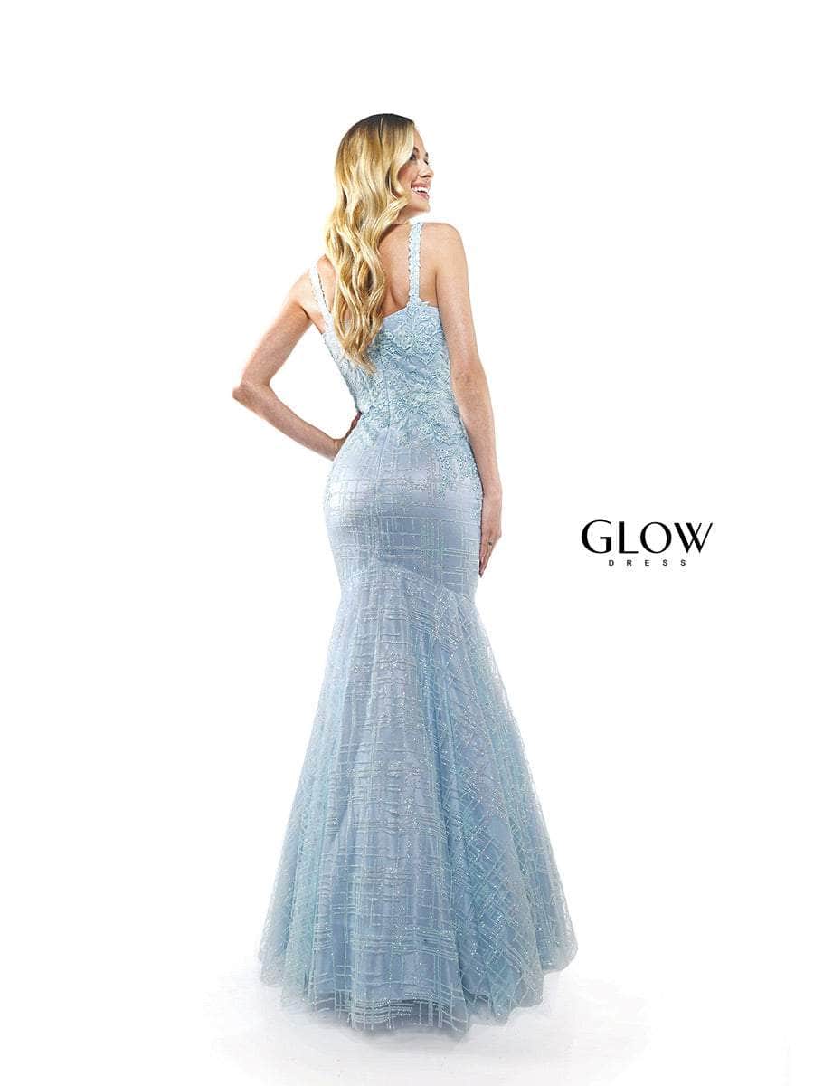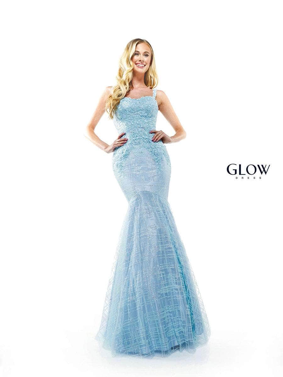 Engage in a night of pure glamour in this Glow G934 creation. Adorned with intricate lace embroidery and sparkling sequin, the sleeveless dress is sure to be a show-stopper. Features are the thin straps that frame the shoulders, while the sweetheart neckline pairs perfectly with the mid-open zippered back. The look finishes in a full-length trumpet skirt that draws attention to your curves. Wearing this chic Glow G934 dress will make an impression that lasts. Models are wearing Light Blue, and Black colors.