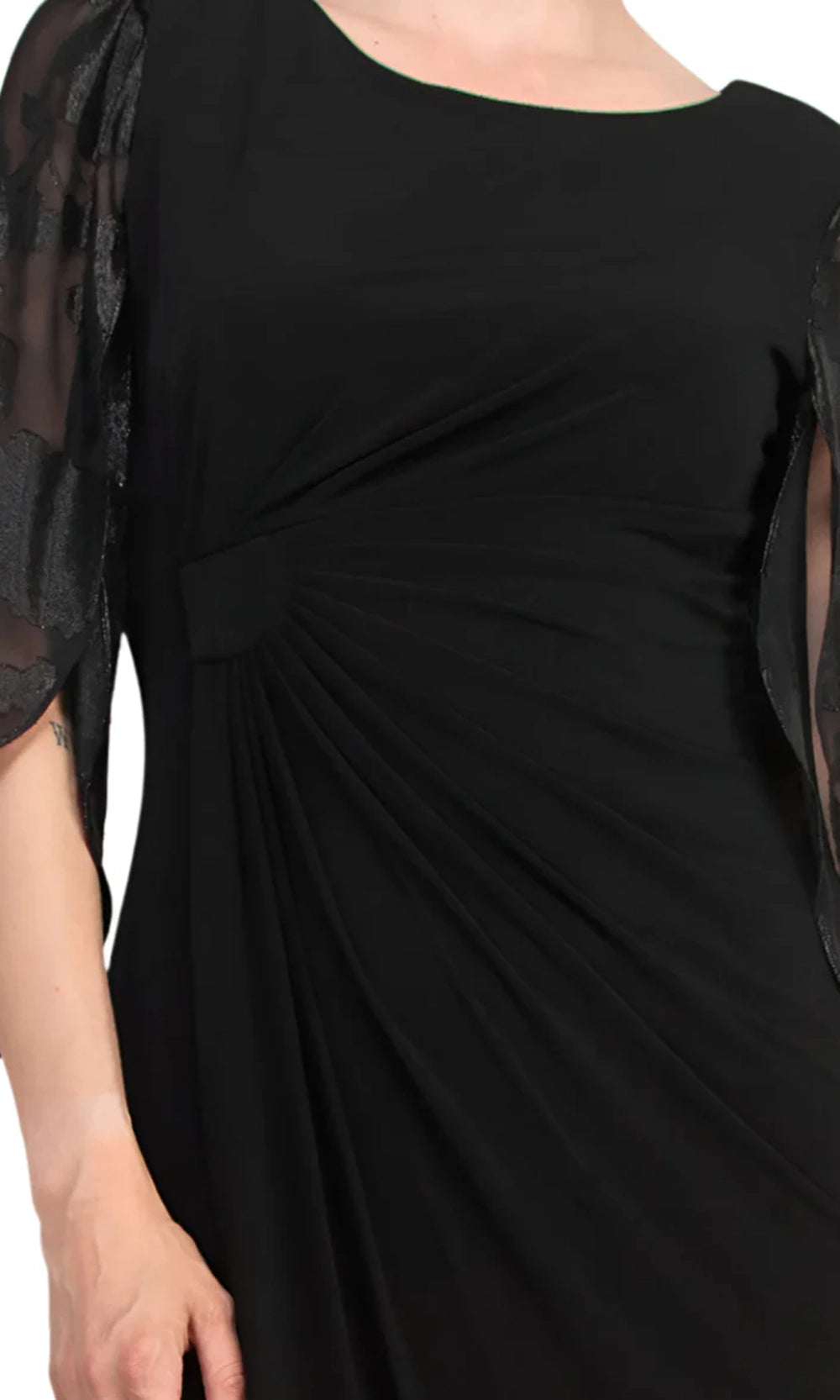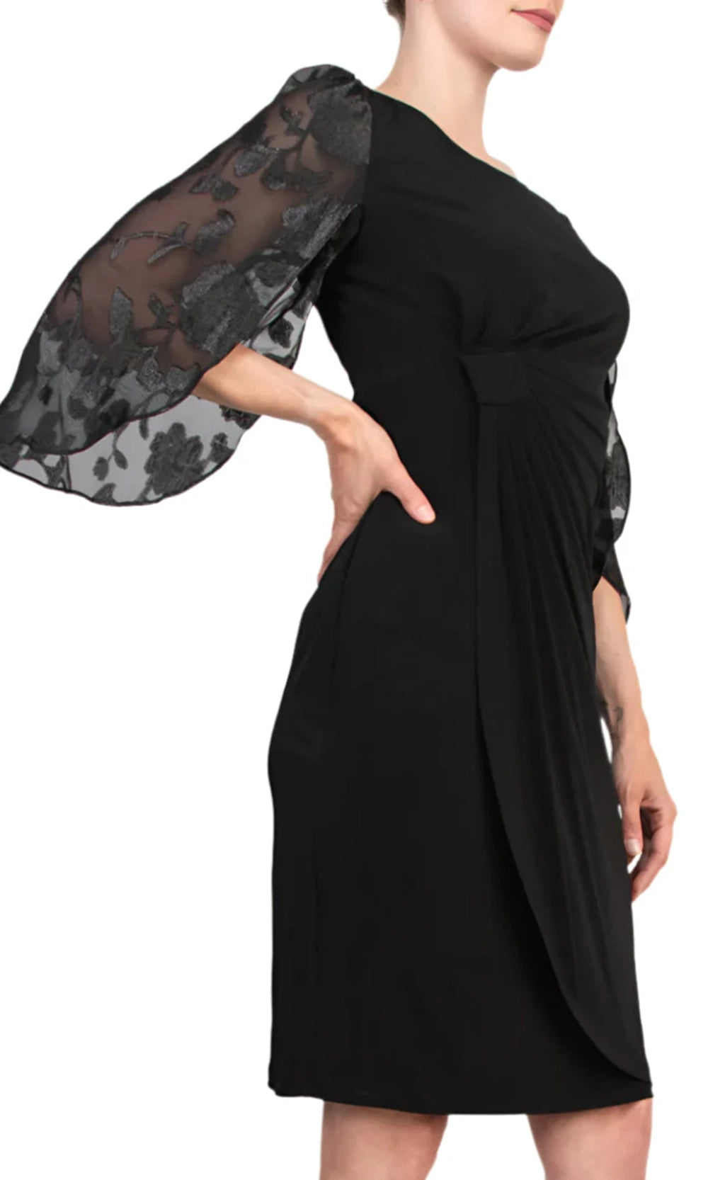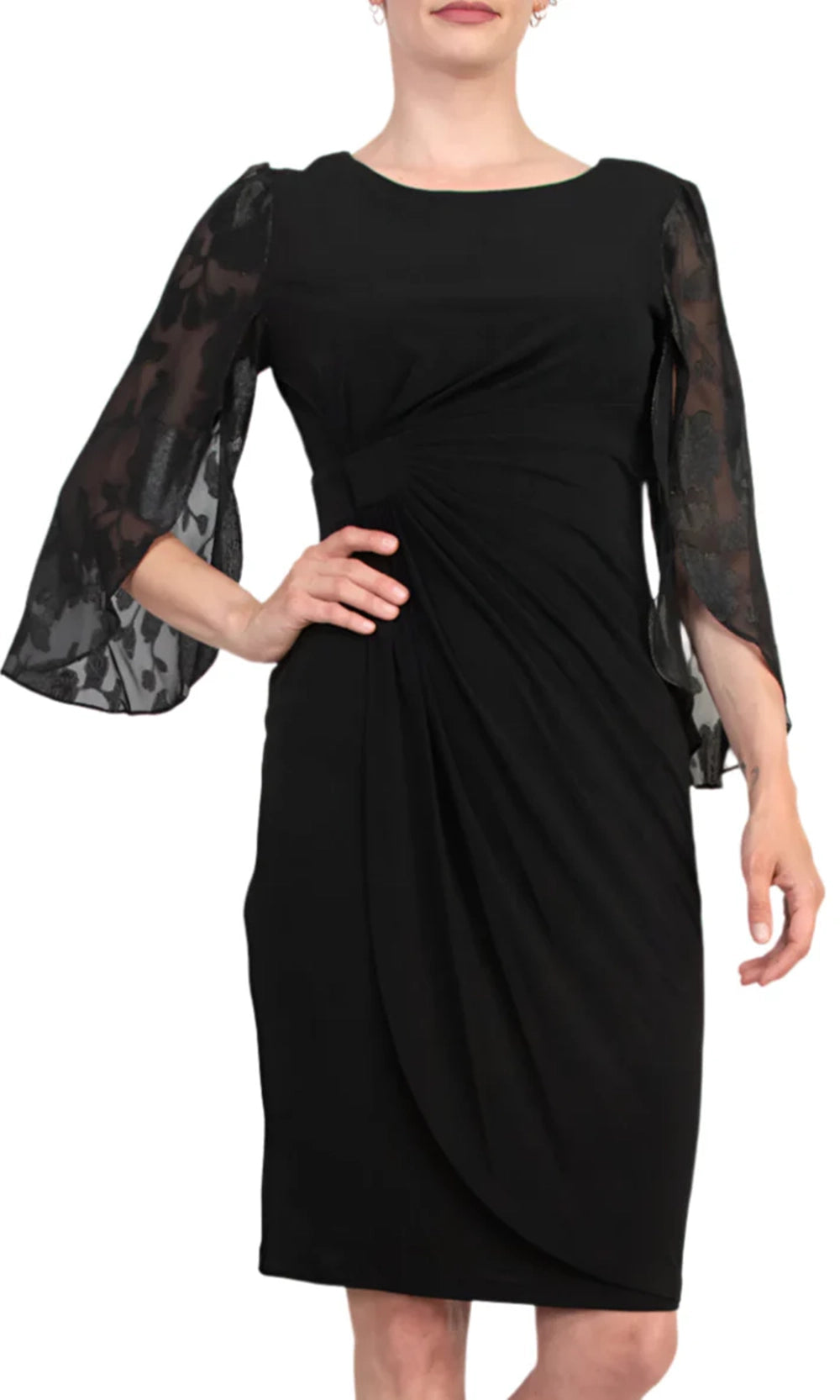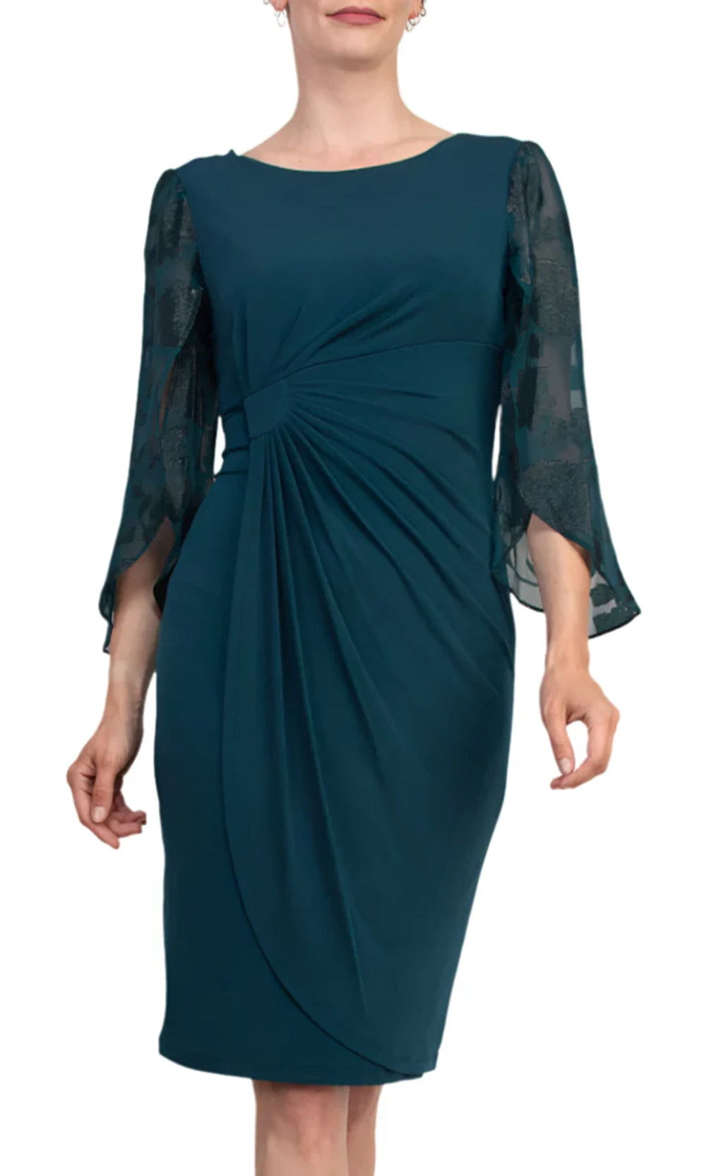 Refined detailing transforms this Connected Apparel TDM73715M1 sheath into a versatile favorite. The dress showcases three-quarter split sleeves with sheer and floral print design, offering graceful movement along the arms. A jewel neckline keeps the bodice polished, while gathering at the waist provides dimension and enhances shape. The fitted silhouette continues to a knee-length hem, striking the perfect balance between elegance and wearability. With Connected Apparel TDM73715M1, sophistication and comfort come together seamlessly. Models are wearing Black, and Dark Mallard colors.