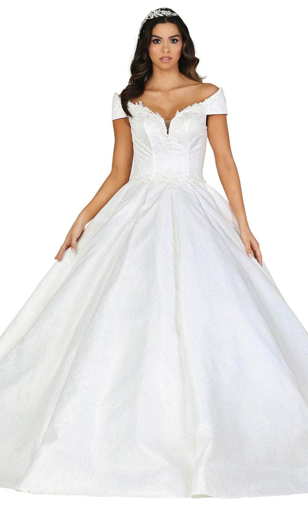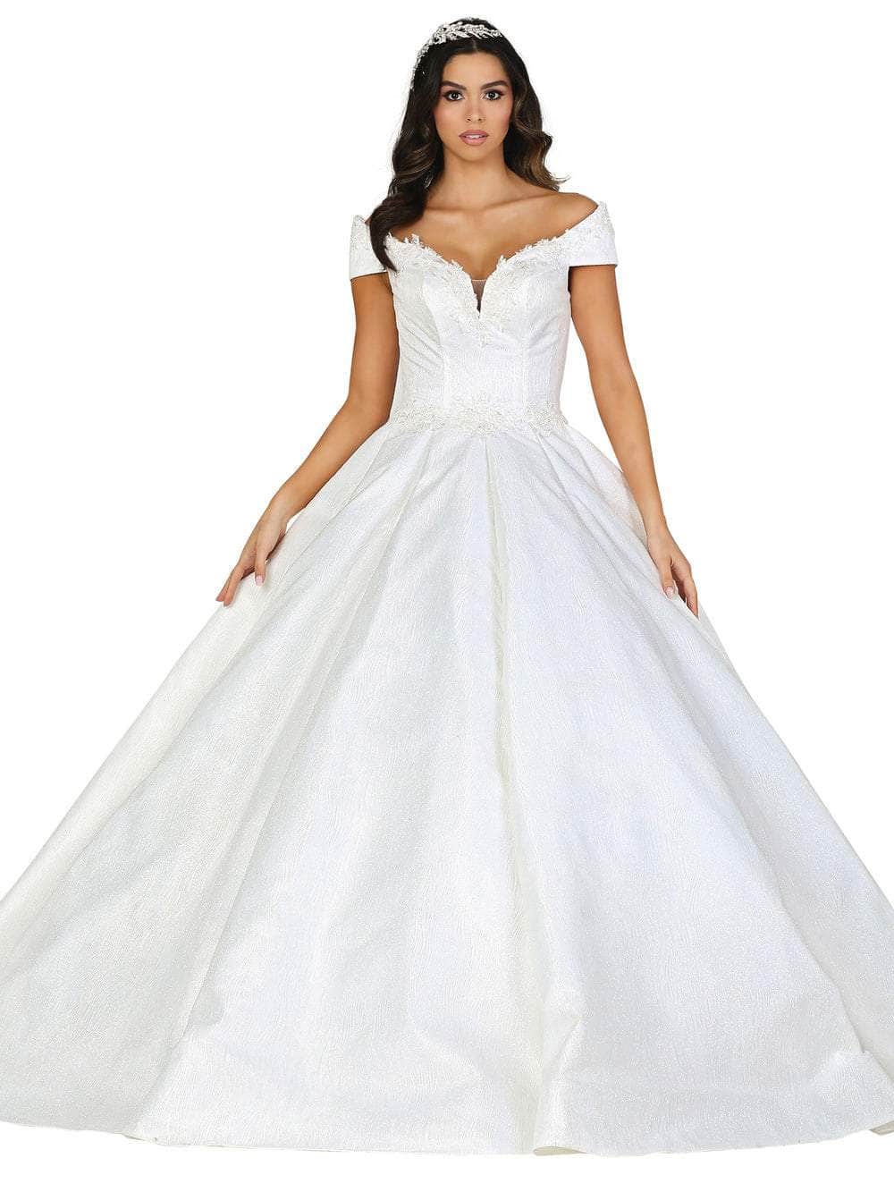 Enjoy timeless elegance on your big day as you wear the gorgeous Dancing Queen 0107 bridal gown. Its delicate charm is enhanced by the soft embellishments that adorn the waist and off-the-shoulder neckline. A flawless fit is guaranteed by the precise tailoring, and the ballgown skirt has beautiful pleats that run to the whole length of the hem. The mid-open back, which is fastened with a lace-up clasp, gives it a contemporary, sophisticated touch. Embrace traditional charm with a modern touch when wearing the Dancing Queen 0107 dress. Model is wearing Off-White color.