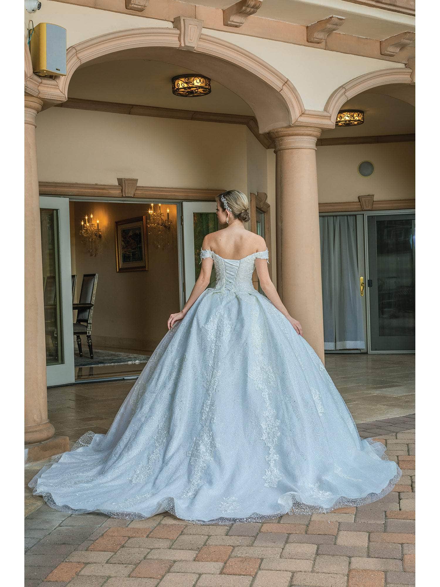 | Details: | Embellished Bodice, Off-Shoulder, Fitted Bodice, Lace Up Back, Train |