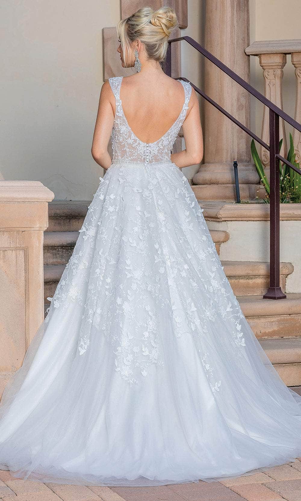 Indulge in the enchanting allure of Dancing Queen 0207, a romantic bridal gown designed to captivate hearts on your special day. Intricate embroideries and delicate beads adorn the sleeveless bodice, complementing the graceful V-neckline enhanced by a sheer insert. A natural waistline cinched with beads accentuates your figure, while the open back, adorned with buttons, adds an irresistible charm. Glide elegantly in the floor-length ballgown silhouette, ensuring you shine with every step. Experience romance with Dancing Queen 0207. Model is wearing Off-White color.