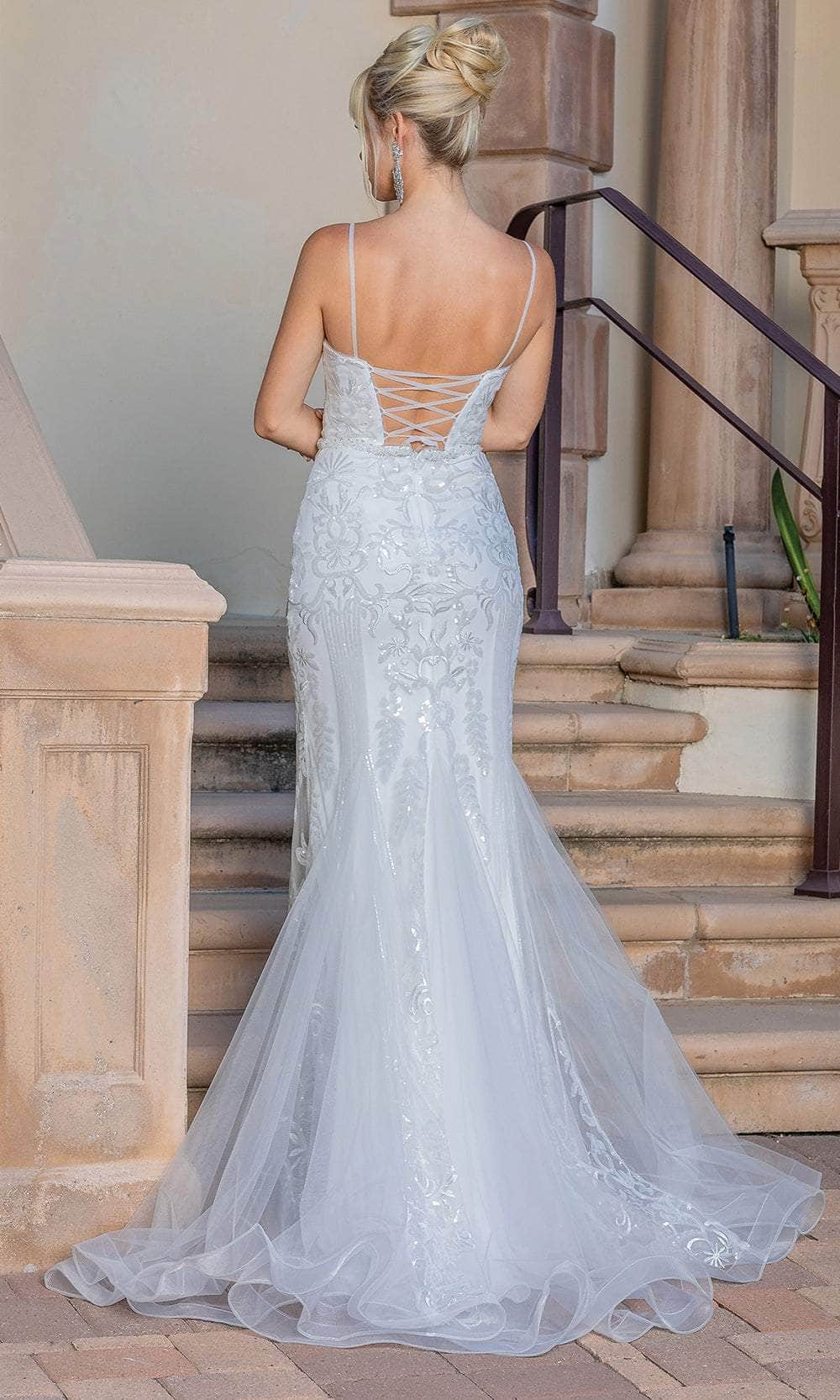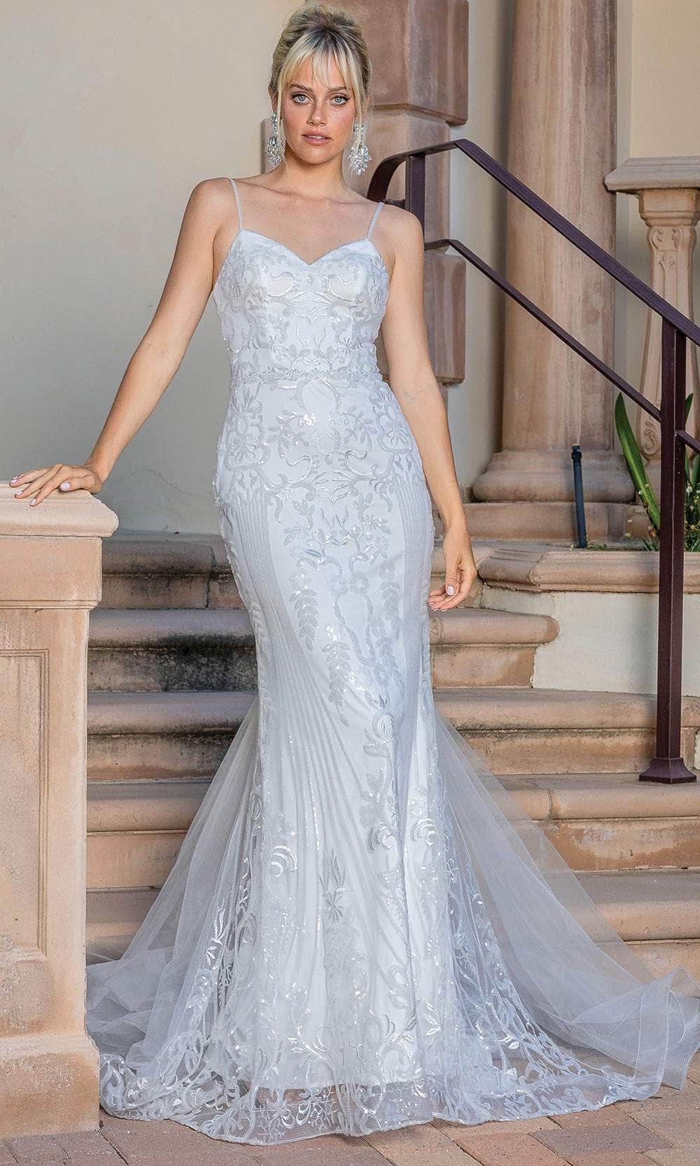 Transform into a refined beauty with the breathtaking Dancing Queen 0216 bridal gown. This embroidered sheath dress has a sweetheart neckline that is beautifully framed by delicate straps and a fitted bodice without sleeves. A perfect fit is guaranteed by a center zipper closure at the back and a lace-up tie. Grace and elegance are added by the floor-length sheath silhouette skirt. Dancing Queen 0216 is a couture masterpiece designed to add even more elegance to your bridal look and make your big day one to remember. Model is wearing Off-White color.