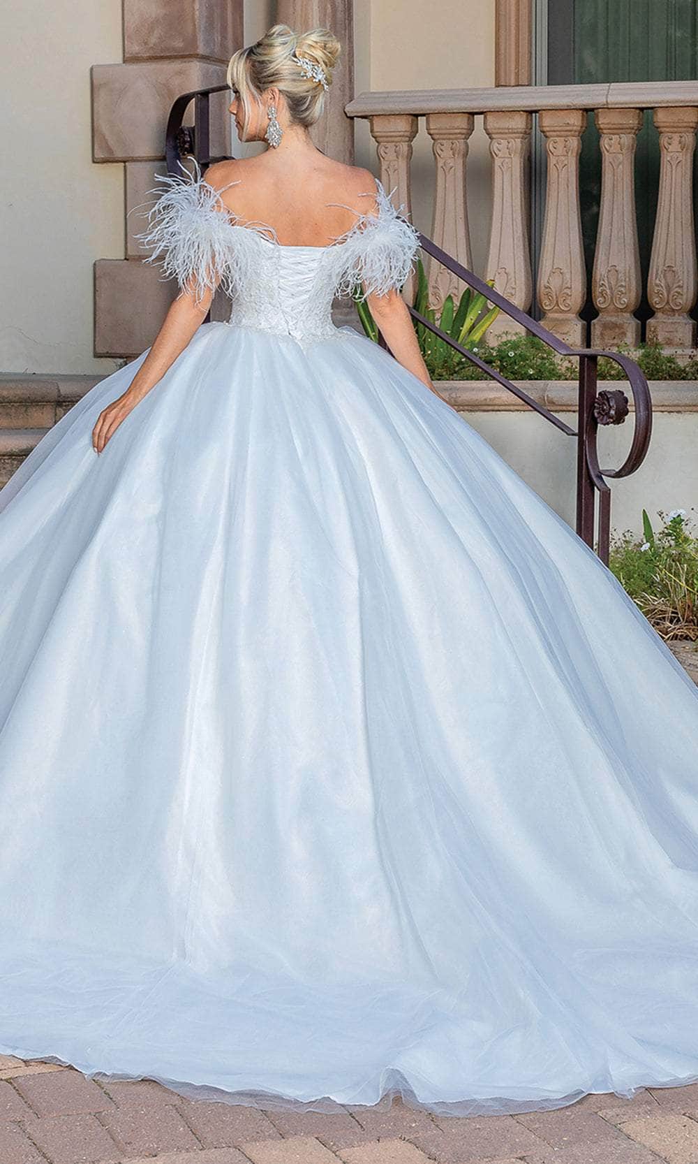 Elegance intertwines with boldness in the Dancing Queen 0243 bridal gown, meticulously crafted to enhance your unforgettable day. Delicate embroideries and off-shoulder sleeves adorned with feathers imbue this gown with timeless sophistication. The fitted bodice, sweetheart neckline, and lace-up back guarantee a perfect fit. As the floor-length skirt flows in a graceful ballgown silhouette, you'll captivate all with your elegance. Embrace the magic of the Dancing Queen 0243 and radiate beauty that knows no bounds. Model is wearing Off-White color.