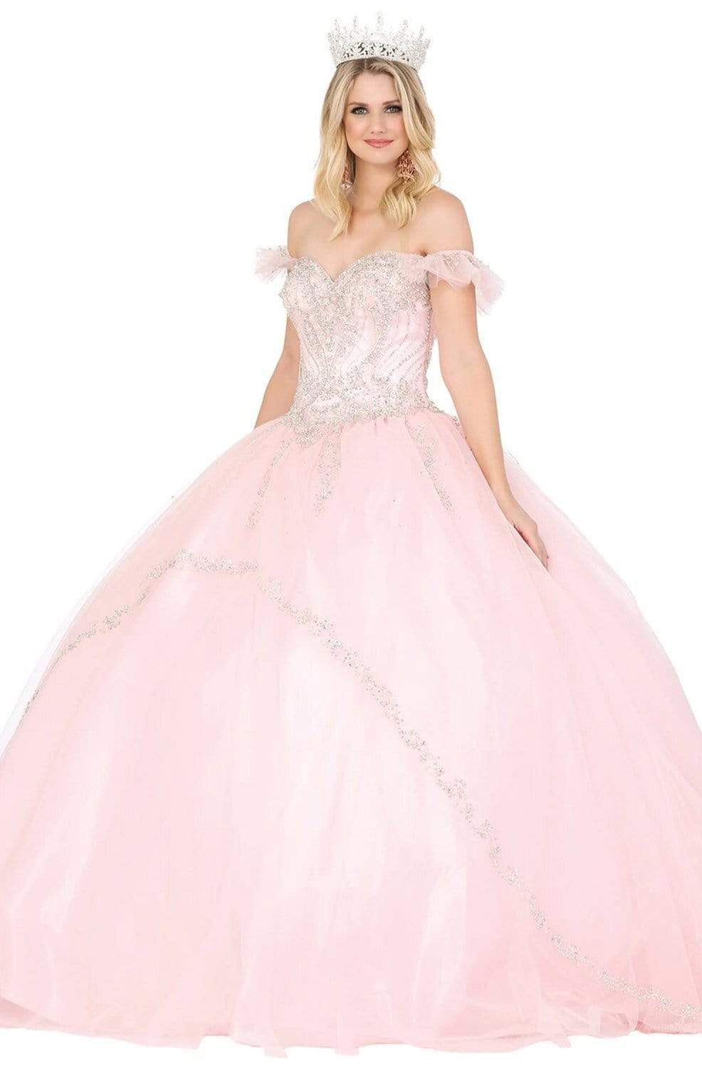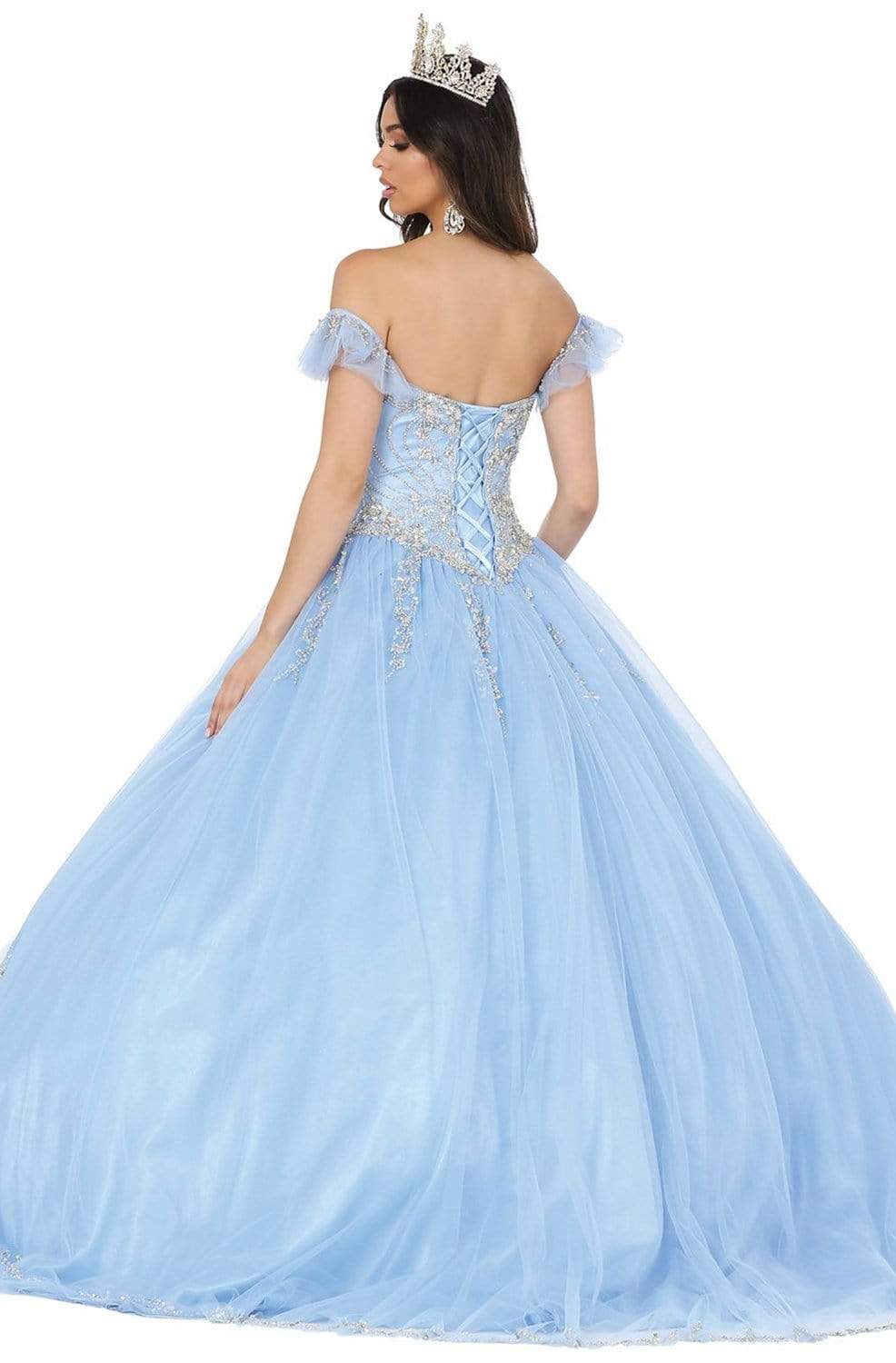 Walk into the ballroom and completely mesmerize everyone in this Dancing Queen 1434 creation. Ornamented with glinting jewels, this gown reveals a sweetheart neckline with ruffled off shoulder sleeves. A corset accent cinches the back. A sheer high low overlay accents its ballgown silhouette with bead-trims and a brush of train. Bask in the attention bestowed on you in this Dancing Queen masterpiece.