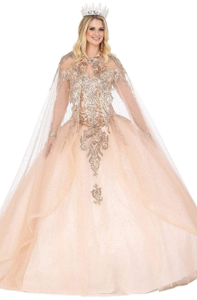 Dancing Queen - 1474 Gilt-Appliqued Off Shoulder Ballgown with Cape