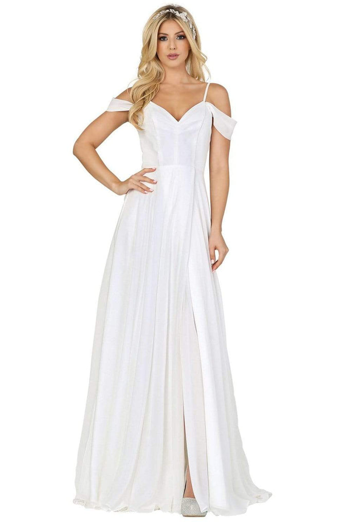 Feel glamorous in this style from Dancing Queen 0155. This style pleases in a V-neckline with shoulder straps. The dress has a flattering fitted bodice with a lace applique back. The skirt is tailored in a full length A-line silhouette and is detailed with a leg slit. Leave everyone speechless when you enter the room in this Dancing Queen look.