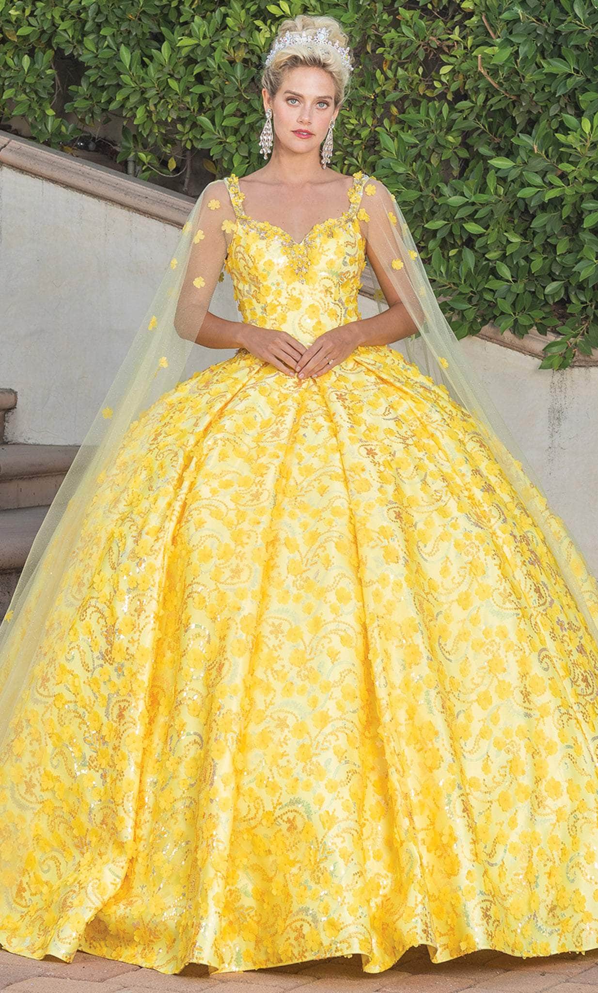 You are a show-stopping beauty with this Dancing Queen 1750 creation. Embellished with 3D floral embroideries, this lovely piece flaunts a sleeveless bodice that is crowned with a sweetheart neckline and perfectly matches a mid-open back with a lace-up tie for a perfect fit. The full-length skirt parades in a ballgown silhouette and end with a sweeping train. As you enter the room, this Dancing Queen 1750 masterpiece, will be the embodiment of timeless elegance Model is wearing Yellow color.