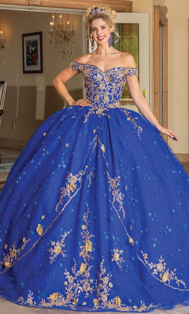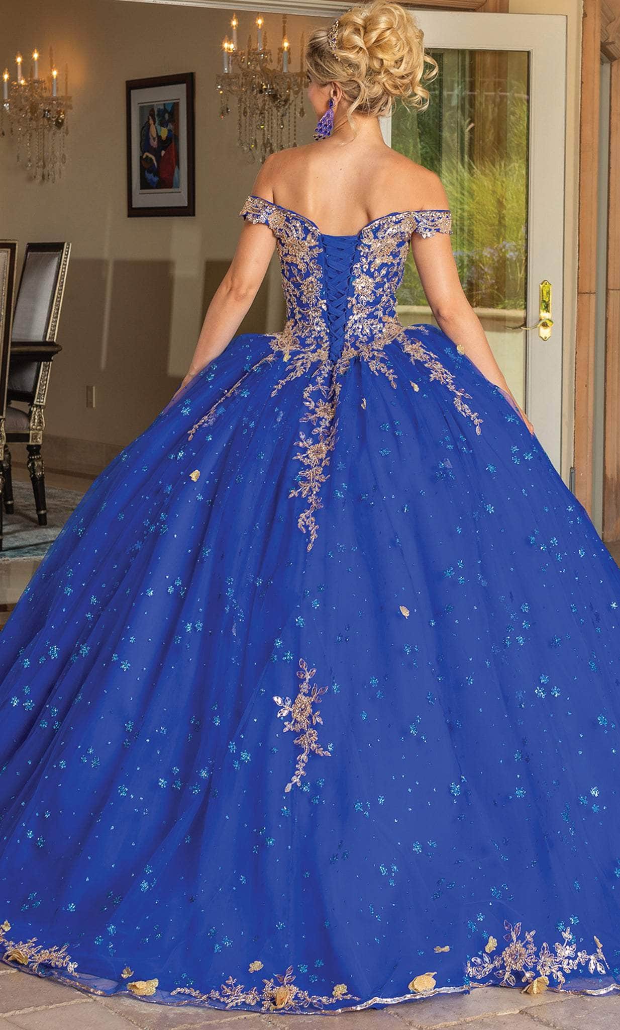 Make yourself into a vision of loveliness in this spectacular creation by Dancing Queen 1796. Shining from top to bottom with beadwork, embroidery and 3D floral appliques, this gown is a show-stealer. It offers an off-shoulder sweetheart neckline, cap sleeves and a corset lace-up tie design on the back. From the natural waist, the full skirt reveals a voluminous ballgown silhouette and pools into a stunning sweep train. Flatter your finest assets as you enthrall the crowd in this Dancing Queen 1796 masterpiece. Model is wearing the Royal Blue color.