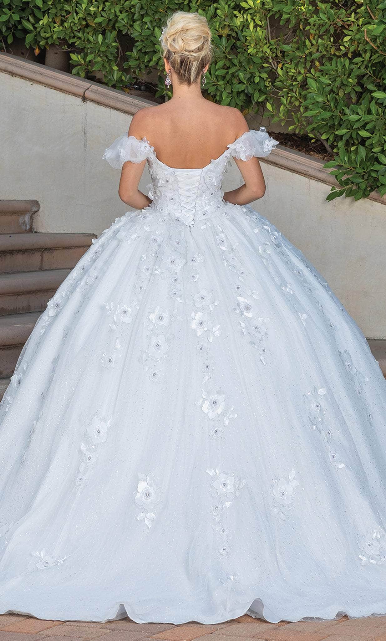 Infuse your special event with stellar style in this Dancing Queen 1806. This stunning gown is extravagantly embellished with three-dimensional floral applique all over and features a fitted bodice crowned with a sweetheart neckline and beautifully framed with off-shoulder sleeves with ruffles. Featuring a mid-open back with a lace-up detail for a perfect fit and a voluminous ballgown skirt that opens from the natural waist. Inspire the devotion of many in this fascinating Dancing Queen 1806. Model is wearing Off White color.