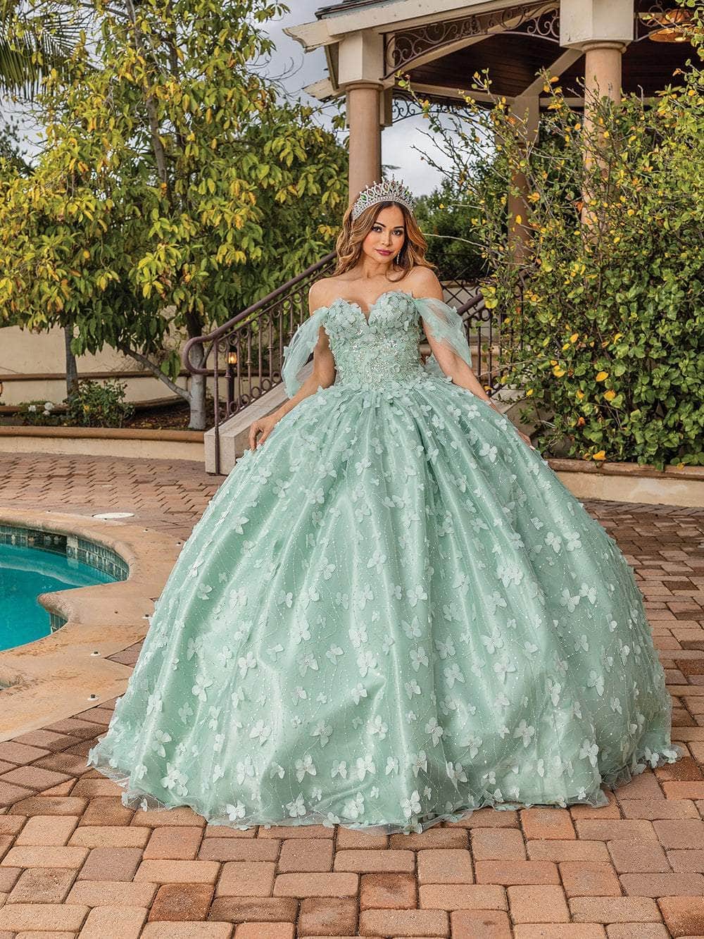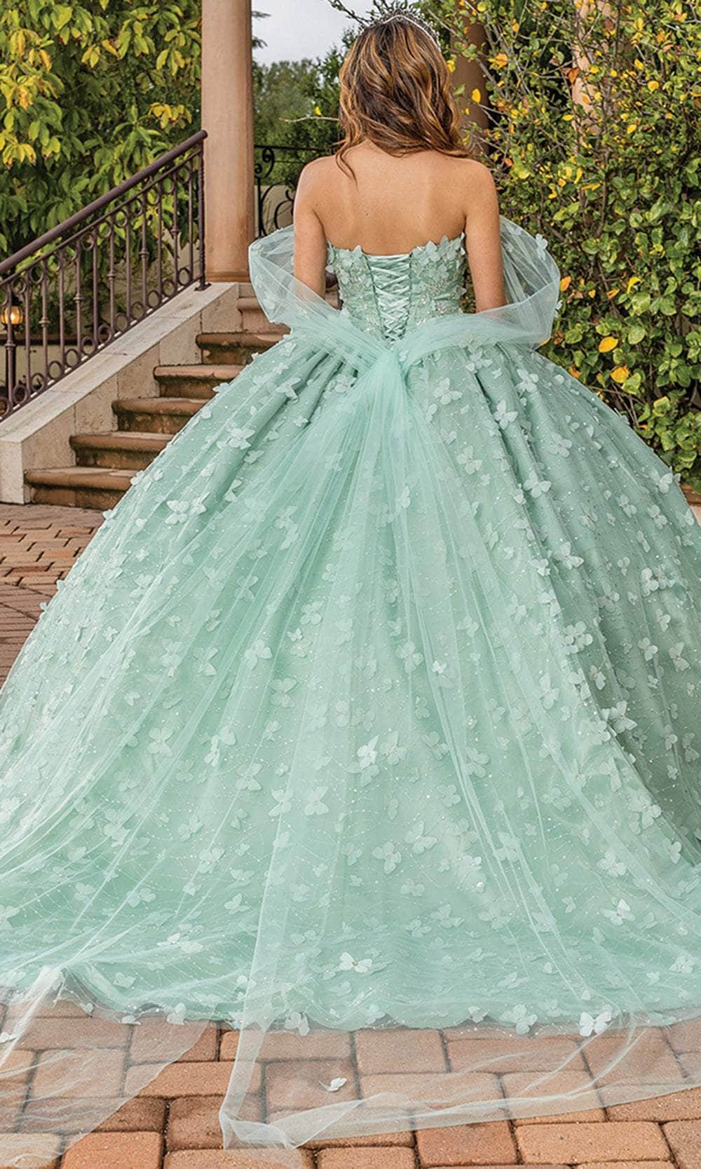 Wearing this exquisitely crafted Dancing Queen 1820 creation will make you appear remarkably brilliant all night. This stunning ensemble, which has butterfly appliques and is completely covered in glistening embellishments, has an off-the-shoulder neckline and a transparent sash that wraps around the back and falls to the floor. The fully butterfly-adorned skirt is exquisitely tiered, creating a ballgown silhouette with a sophisticated trailing hem, and the back is elegantly fastened with a corset-style closure. In this wonderfully captivating Dancing Queen 1820 masterpiece, exude grace and charm throughout the event. Model is wearing the Sage color.
