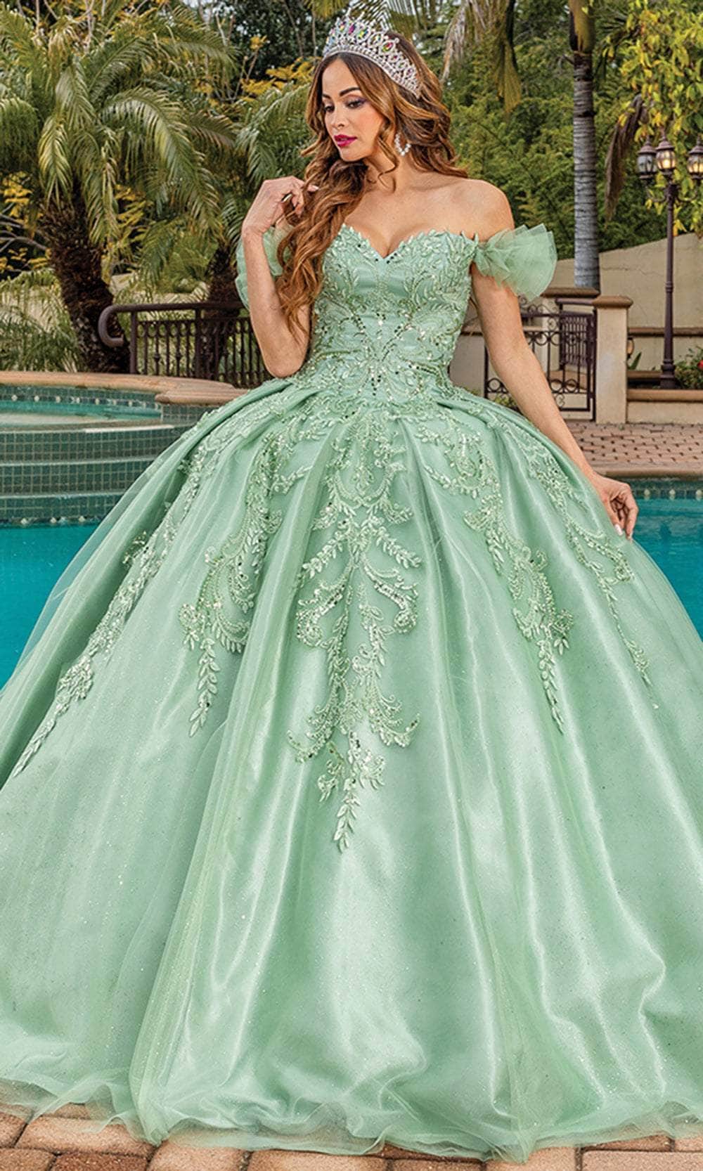 Make sure you look absolutely exquisite in this exquisitely crafted Dancing Queen 1834 piece. This stunning piece features an off-the-shoulder neckline with sheer ribbon-style arm straps, and it shimmers with embellishments and trails with lace details of foliage and butterflies. The fully embroidered skirt, which has a corset-styled back and a sweeping denouement, is layered in an enticing way, showcasing a ballgown silhouette. In this enticingly whimsical Dancing Queen 1834 masterpiece, radiate elegance and allure throughout the occasion. Models are wearing the Red and Sage colors.