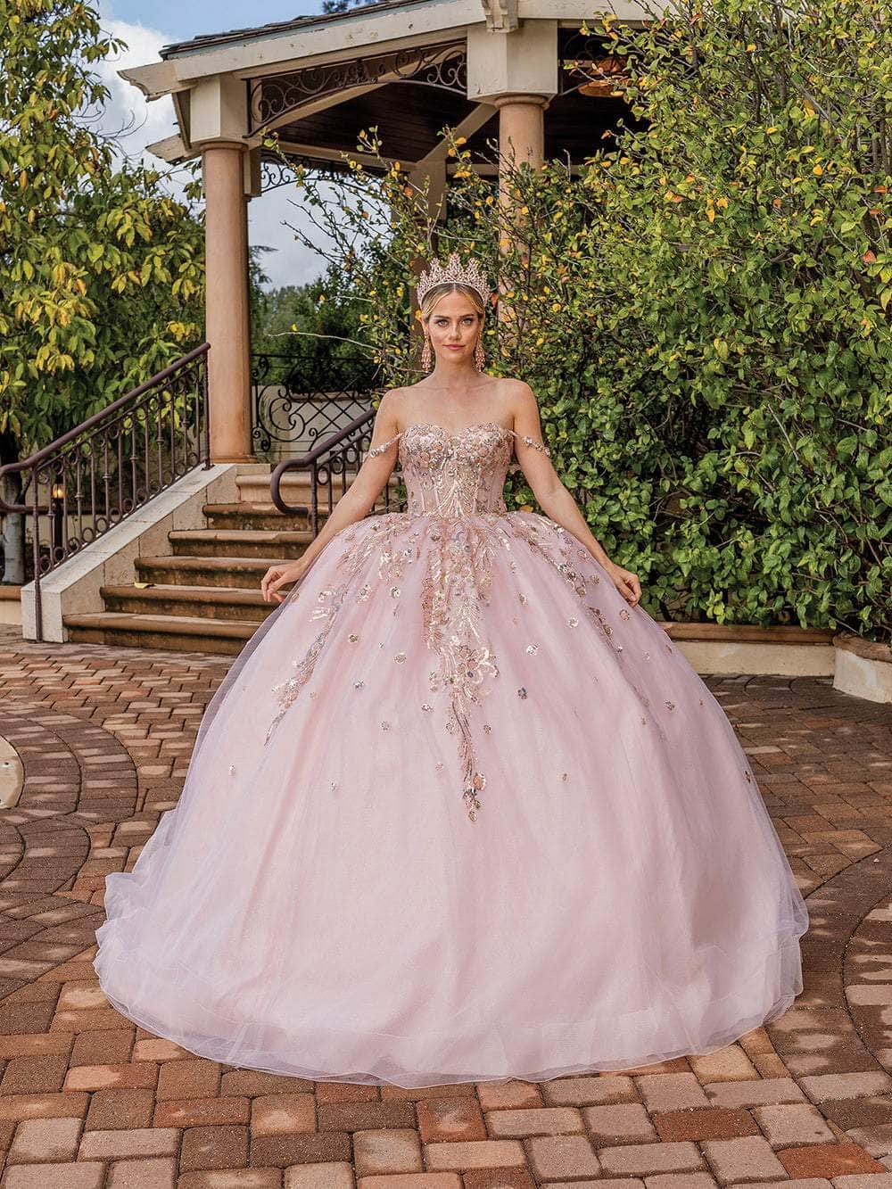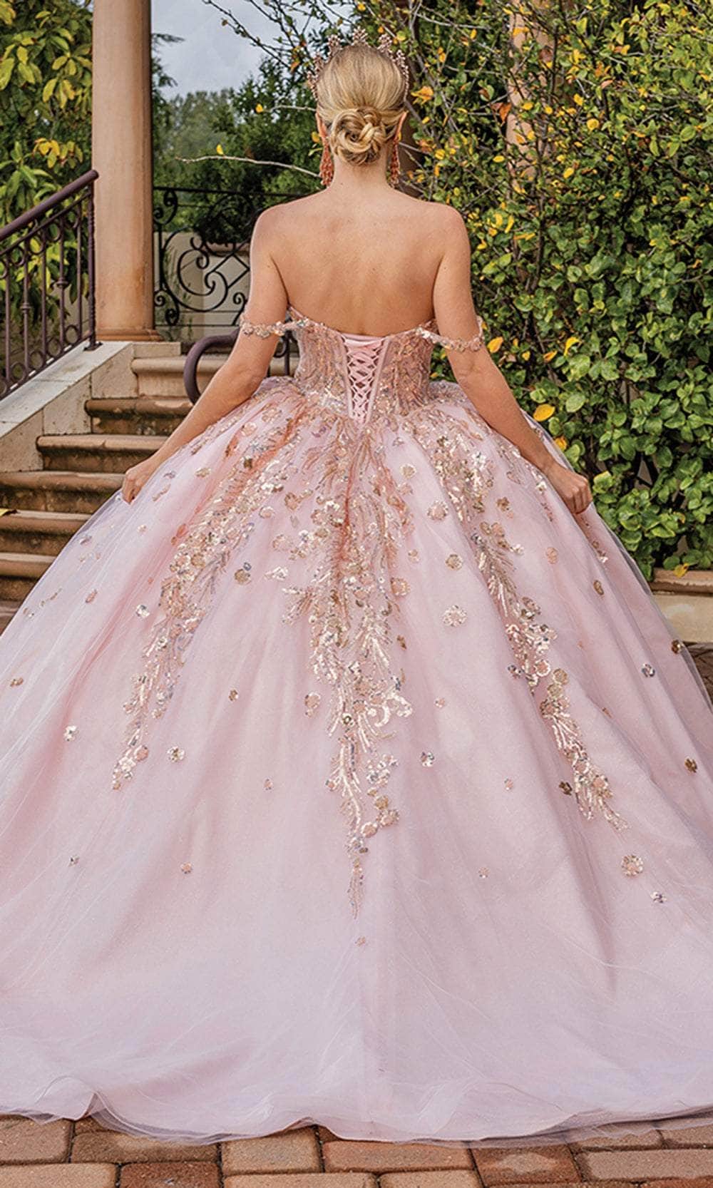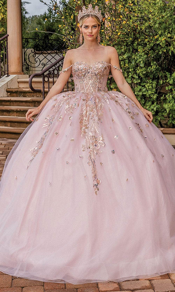 With the flawlessly crafted Dancing Queen 1894 creation, you can reveal your inner goddess. This dress, which celebrates the beauty of the female form and is embellished with a captivating array of sparkling details, has an off-the-shoulder neckline and a sweetheart bodice. The elaborately elaborate skirt, which has a lace-up back and applique-adorned straps, highlights the voluminous silhouette with a dazzling display of embellishments and a sweep of train. In this magnificent Dancing Queen 1894 masterpiece, create a moment that lets you shine. Model is wearing the Blush color.