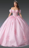 Channel whimsical romance in this Dancing Queen 1932 fairytale-inspired ballgown, designed to make dreams come true. The gown features off shoulder puff sleeves and a sweetheart neckline, enhanced with 3D floral applique and embroidery that adds texture and depth. The glitter skirt sparkles with every step, while the Basque waistline and lace up back ensure a secure and flattering fit. For quinceaneras or grand occasions, the Dancing Queen 1932 masterpiece embodies ethereal elegance with every detail. Models are wearing Blush, and Dusty Blue colors.