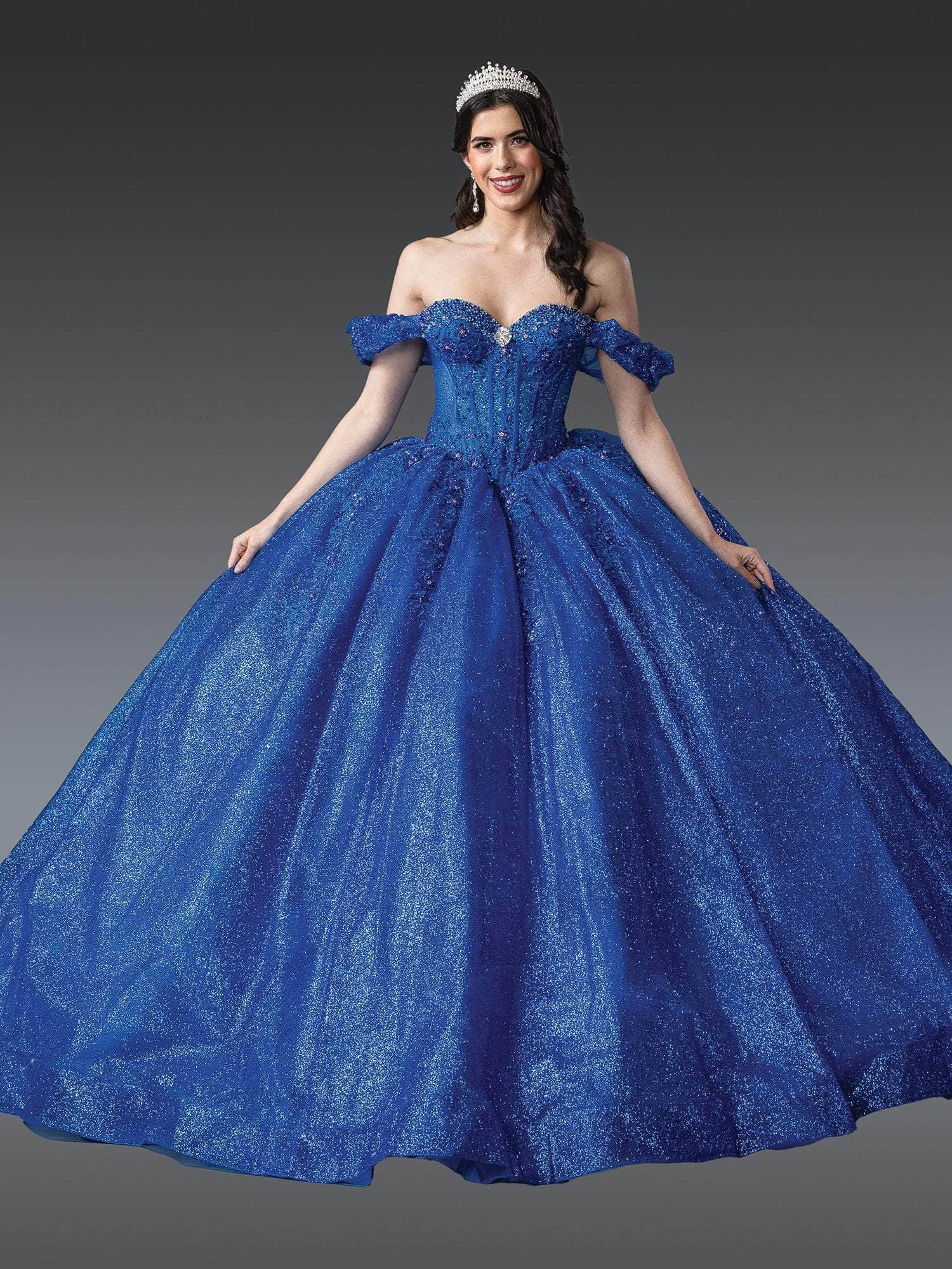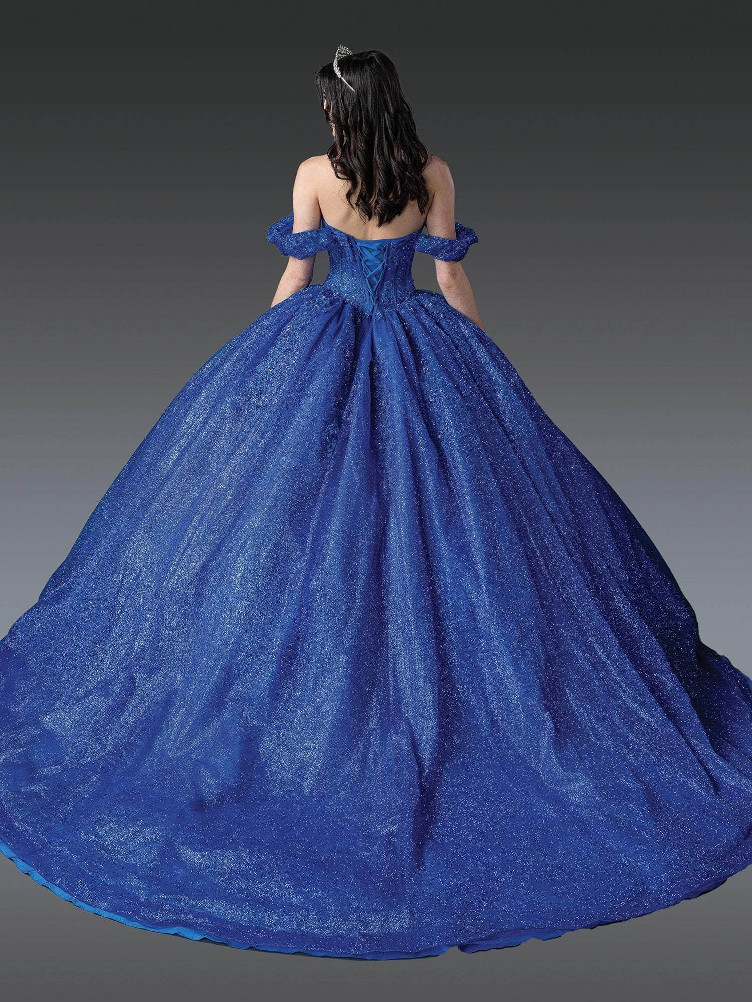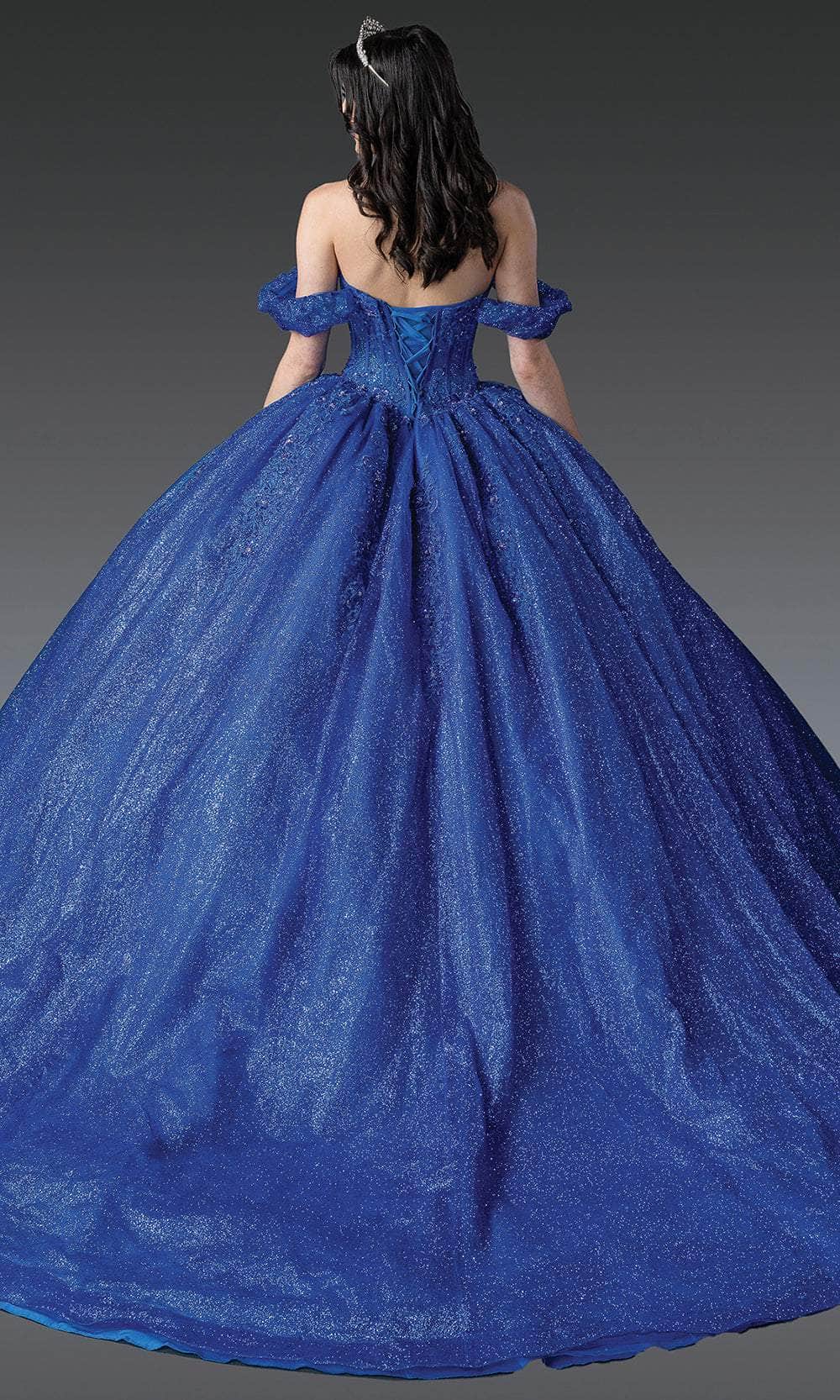 Exude glamour in the Dancing Queen 1992 quinceanera gown, a showstopping creation designed to sparkle from every angle. Crafted from glitter tulle fabric, this ballgown features a flattering sweetheart neckline and romantic off-shoulder cap sleeves. The corset bodice is detailed with exposed boning and bead accents that elevate its dazzling appeal. A lace-up back completes the design, ensuring a perfect and adjustable fit. Celebrate in style and create lasting memories with the stunning Dancing Queen 1992 masterpiece. Model is wearing Royal Blue color.