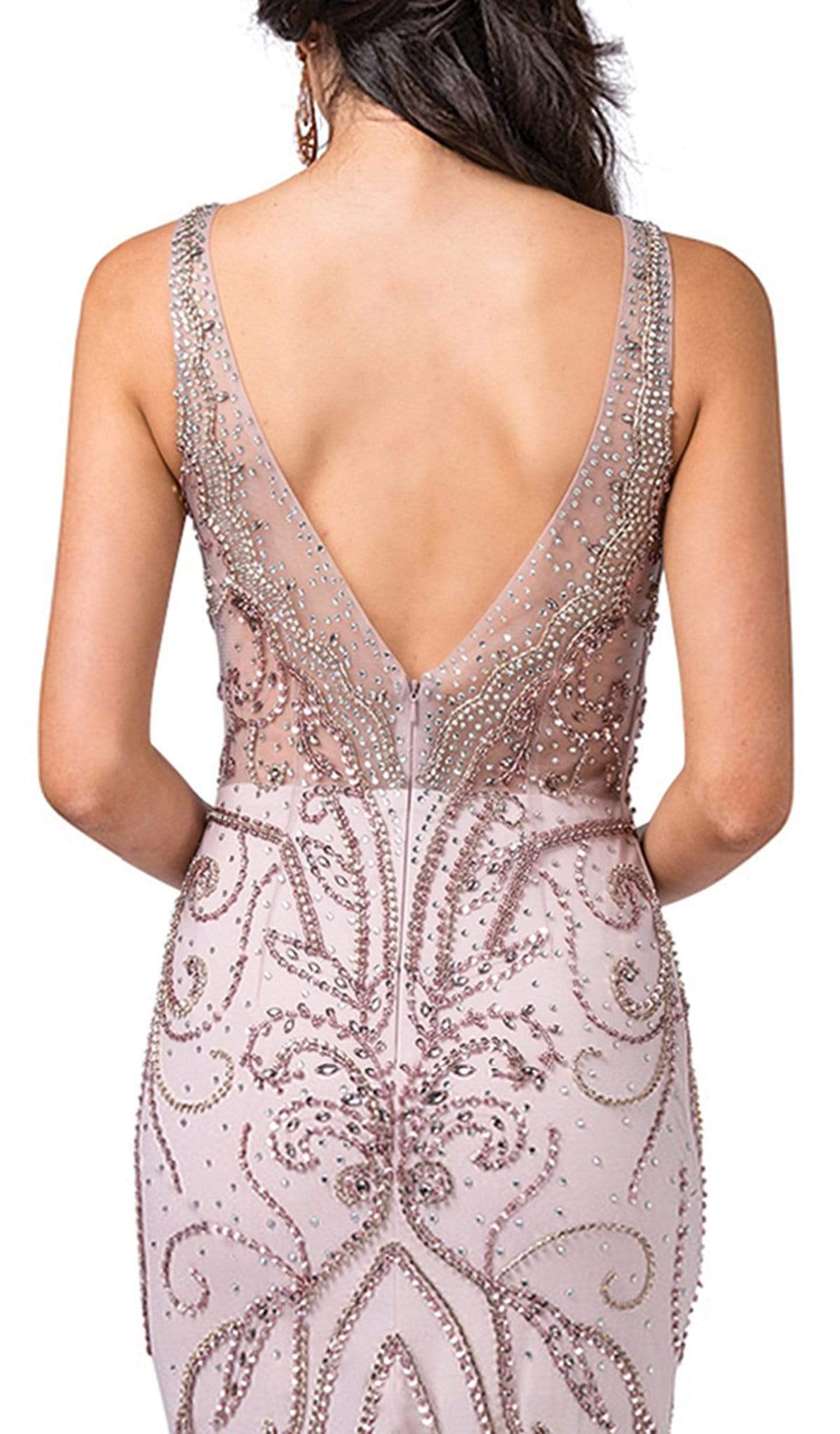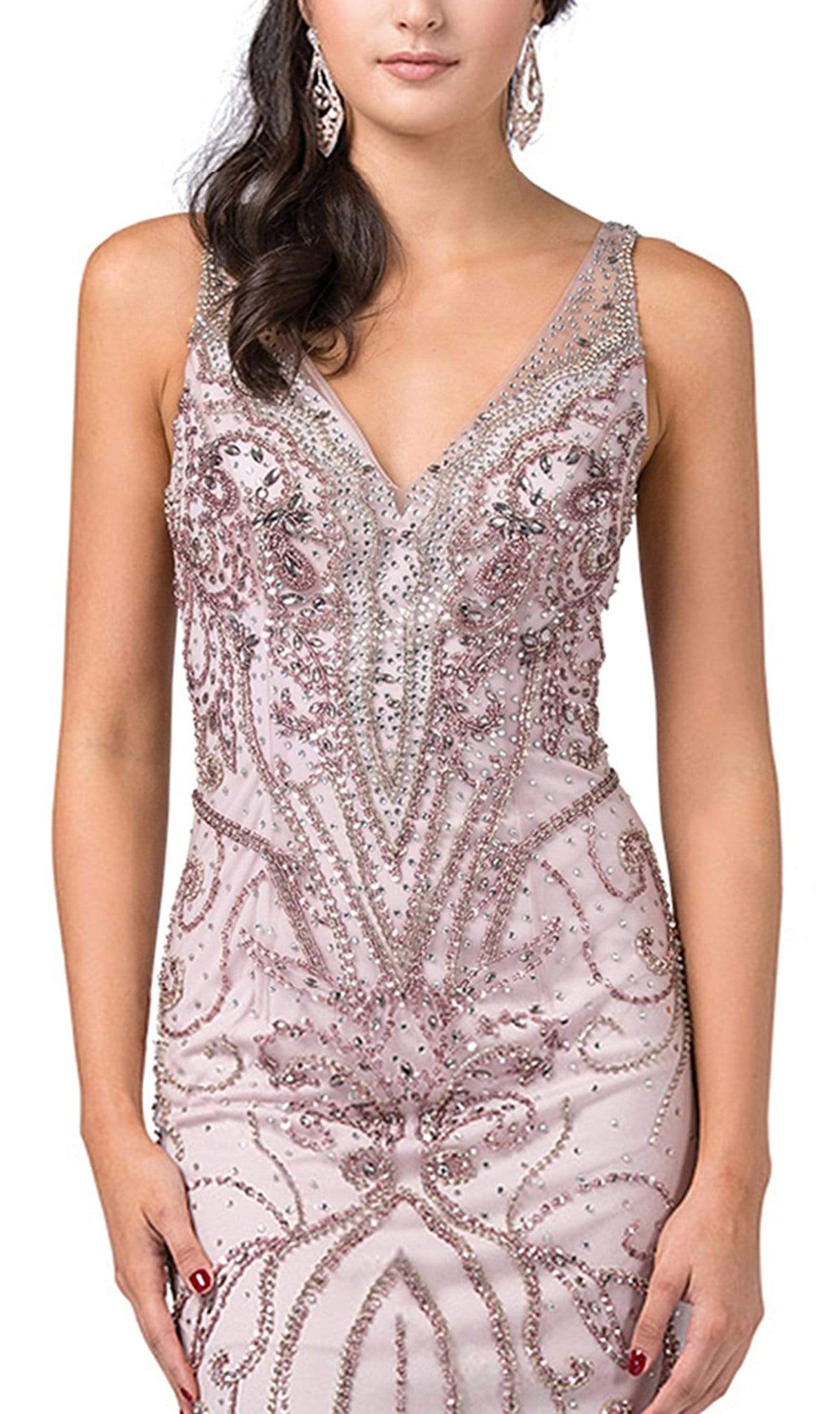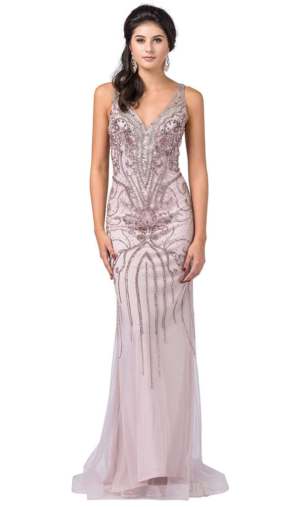 Get noticed in any crowd wearing this dress by Dancing Queen 2487. Features a sleeveless, V-neckline with shoulder straps. The fitted bodice is lavishly ornate with sparkling embellishments that continue down the full length trumpet skirt. The dress is styled with a low V-back and a zipper closure while the skirt finishes in a horsehair hemline. This Dancing Queen creation is truly remarkable!