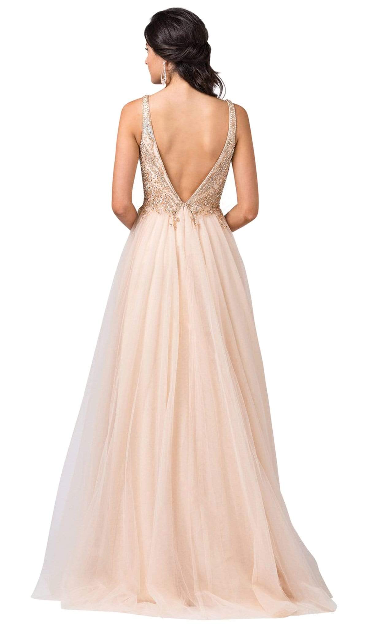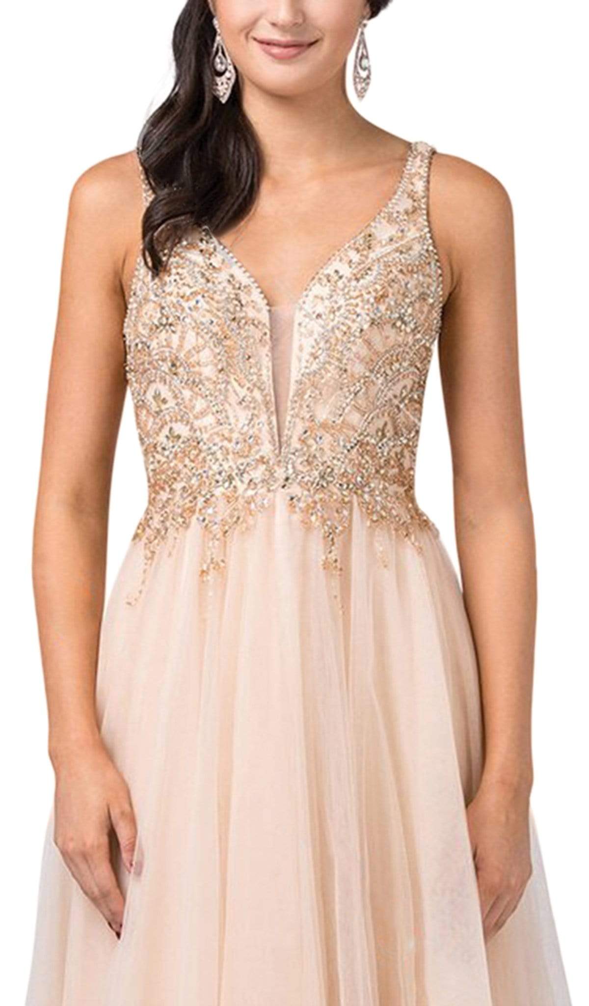 Dancing Queen - 2514 Plunging V-Neck Bejeweled Bodice A-Lin Gown