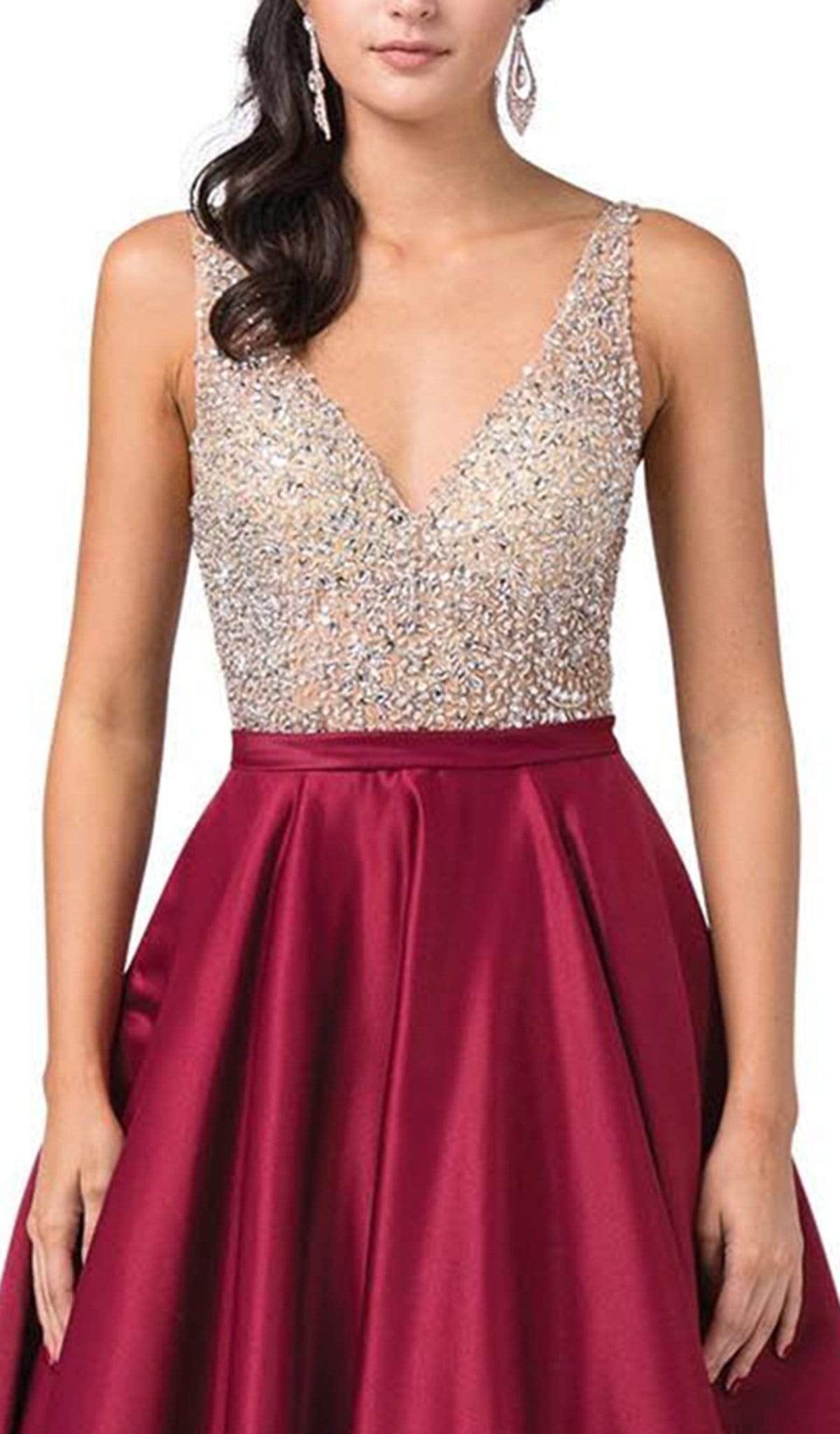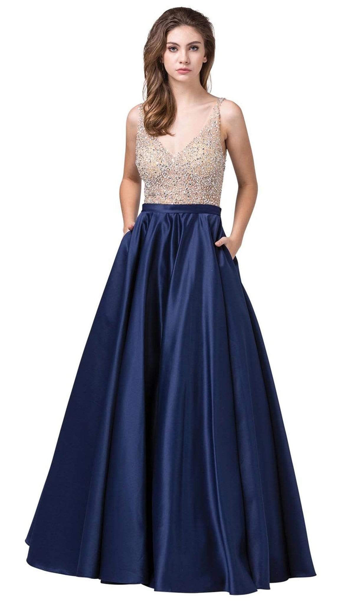 Look lovely in this timeless gown by Dancing Queen 2568. Presents in a sleeveless, V-neckline with thin straps. The fitted bodice is fully ornate with glittering embellishments and features a low V-back and a zipper closure. From the natural waist begins a full length ballgown skirt. This posh party gown by Dancing Queen puts you in the spotlight