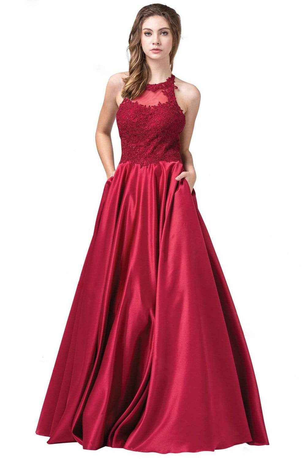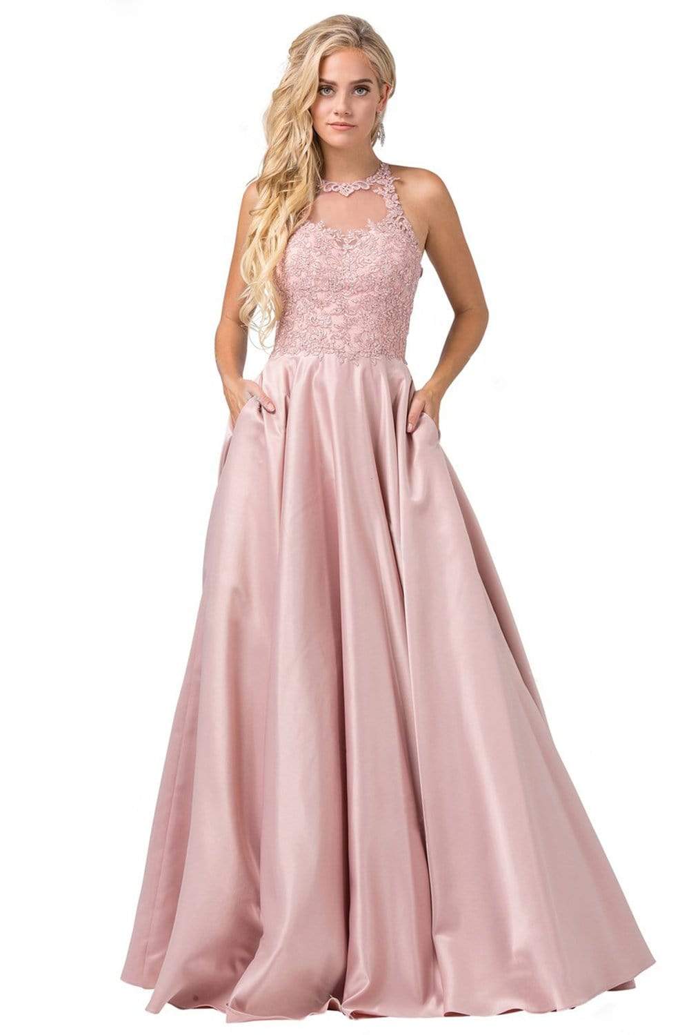 Step out in style wearing this lovely Prom dress from Dancing Queen 2625. The sleeveless bodice is elegantly adorned with beads and embroidery appliques, top by jewel neckline with a sweetheart shaped sheer mesh covered cutout. The back flaunts a mid-open style with crisscross slender straps support and center zipper closure. The natural waist give way to the shirred ballgown skirt with inseam side pockets. With a little glam and a lot of class, this Dancing Queen style will make a statement at this year’s Prom.