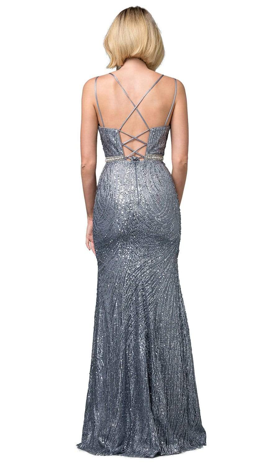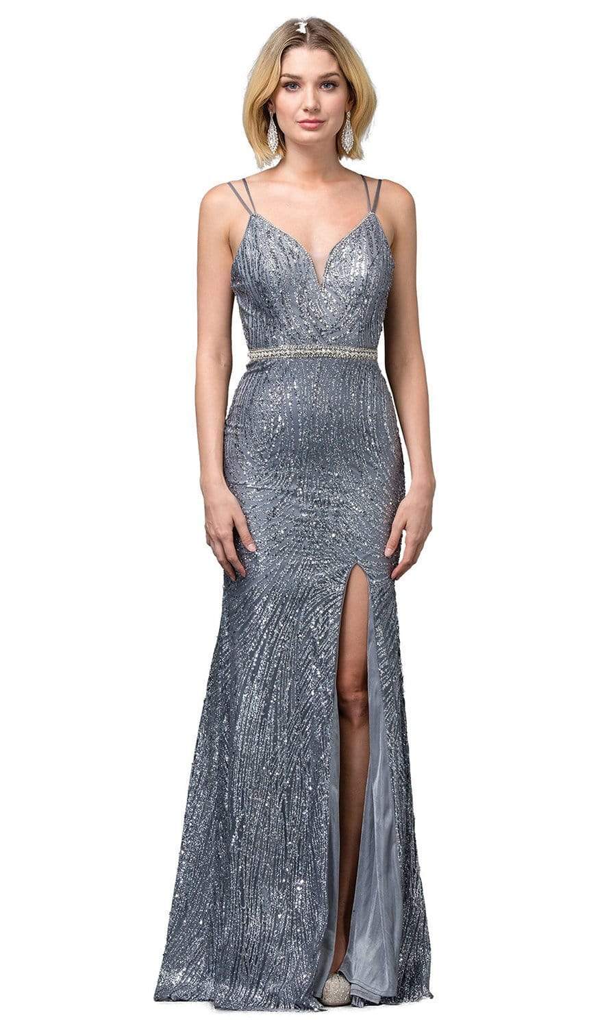 Dancing Queen - 2826 Glitter Plunging V Neck Gown with Slit