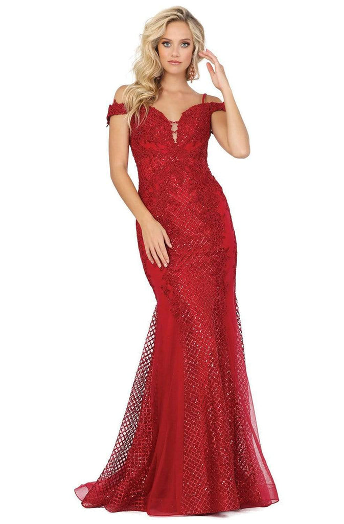Walk into a grandiose event while showcasing a fabulous style wearing Dancing Queen 2995 long evening formal dress. Fascinatingly embellished with beaded lace embroidery and sequins fabricated on sheer netting, this elegant piece reveals a trendy off-shoulder V neckline with an illusion modesty inset and spaghetti shoulder strap support. Segmented with tailoring seams, the shimmering skirt flourishes a decadent full-length mermaid silhouette with a sweeping train. Indulge everyone with a sassy style in this posh Dancing Queen masterpiece.