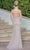 Make a memorable splash at your upscale evening in this lux evening gown by Dancing Queen 4257. Embellished with sequins on a fit and flare silhouette, this gown features a deep V-neckline with mesh inset in a sleeveless form. Supported with thin straps that traverses to the open back with crisscross designs and zipper closure. The defined waistband accentuates the curves as the sheath skirt opens a high slit and it falls gracefully to the floor ending in a sweep train. Take your seat on the throne in a queenly creation from Dancing Queen 4257. Models are wearing Gold, Hunter green, Navy and Burgundy colors.