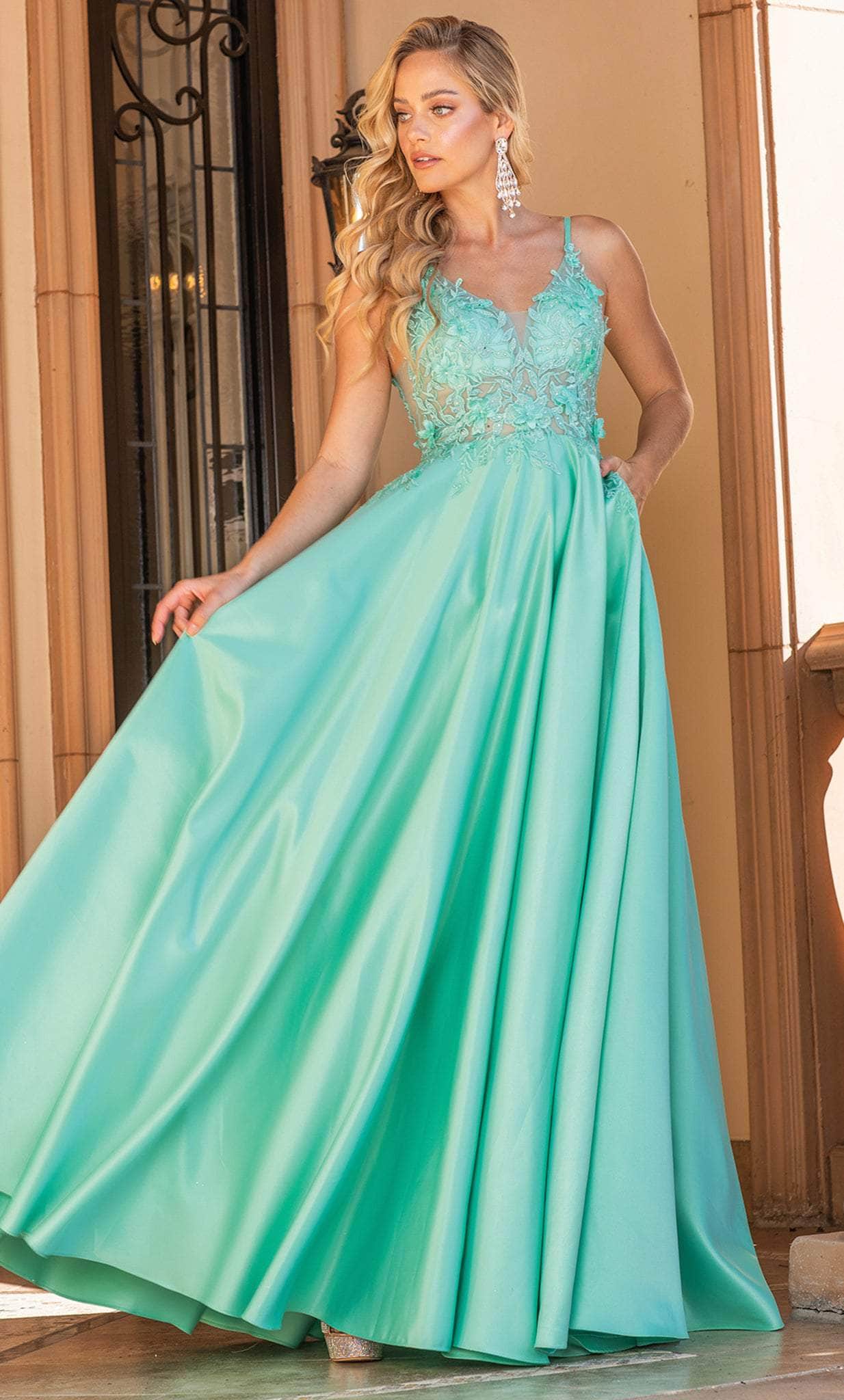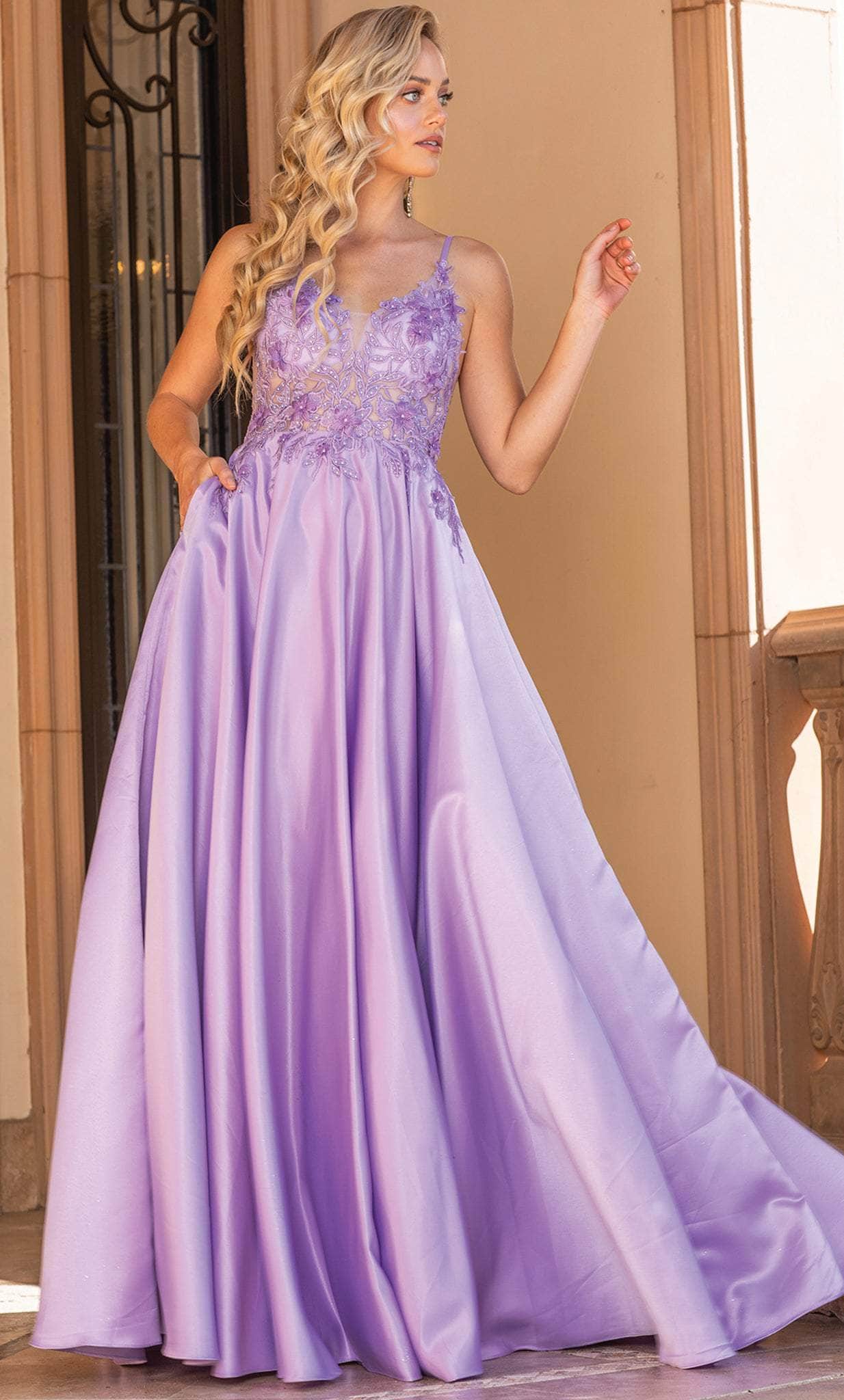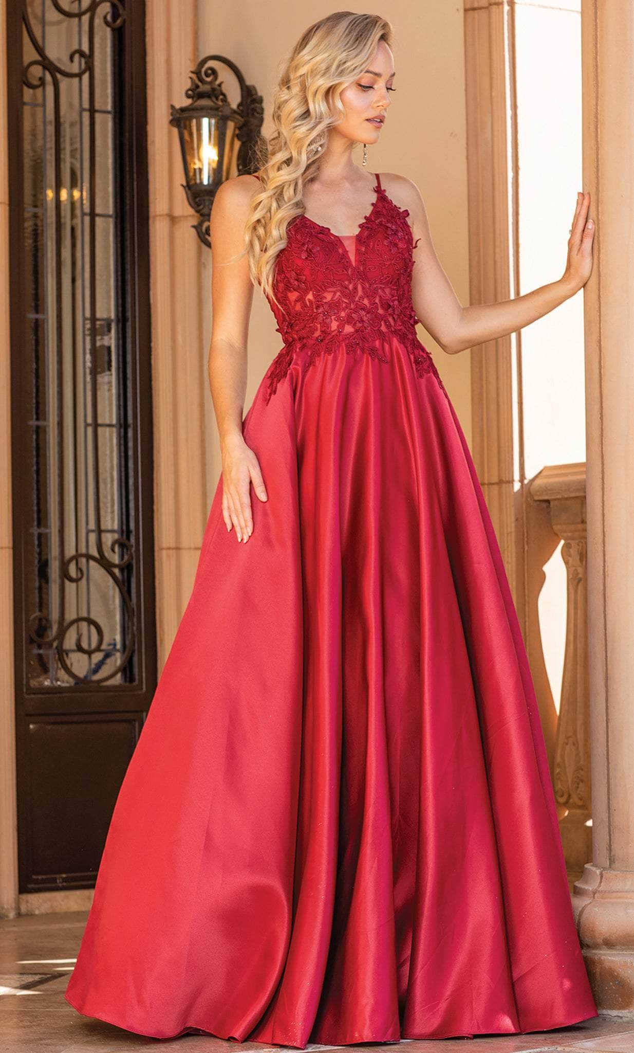 Dancing Queen 4326 - Lace Appliqued V-Neck Prom Gown