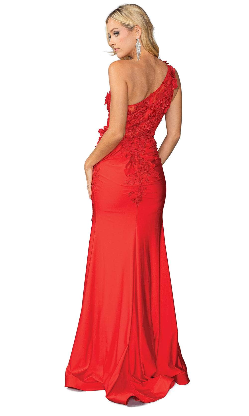 Make a grand entrance in this Dancing Queen 4381 masterpiece. Dazzle in the enchanting beauty of this sleeveless one-shoulder gown adorned with 3D floral appliques and embroidery. The illusion top bodice adds a hint of mystery, crowned by the asymmetric neckline and mirrored by the mid-open back. As you gracefully move, the skirt forms a sheath silhouette that accentuates your figure. It opens a high leg slit before it flows to the sweeping train. Have a blast in this fashionable Dancing Queen 4381 creation. Models are wearing Lilac, and Red colors.