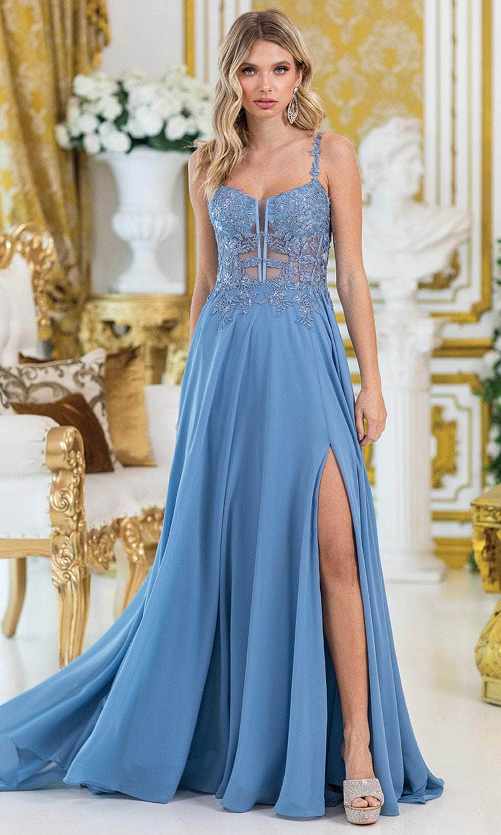 The Dancing Queen 4531 is designed for those who seek effortless beauty. Featuring a lace applique and beaded decorations on the top bodice with a sweetheart neckline, this A-line gown flows gracefully to the floor. The illusion detail and embellished thin straps enhance its delicate charm, while the thigh-high slit introduces a contemporary edge. Wear the Dancing Queen 4531 to your next formal event and captivate the room with grace and elegance. Models are wearing Burgundy, Dusty Blue, and Lilac colors.