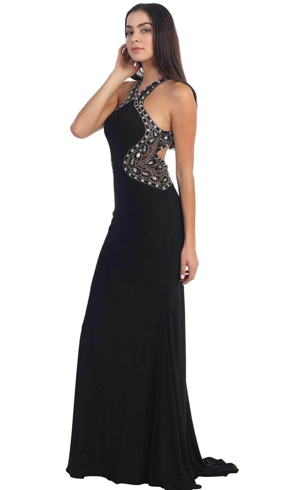 | Details: | Sleeveless, Diamond Cutout Back, Embellished Illusion Sides, Sweep train |
