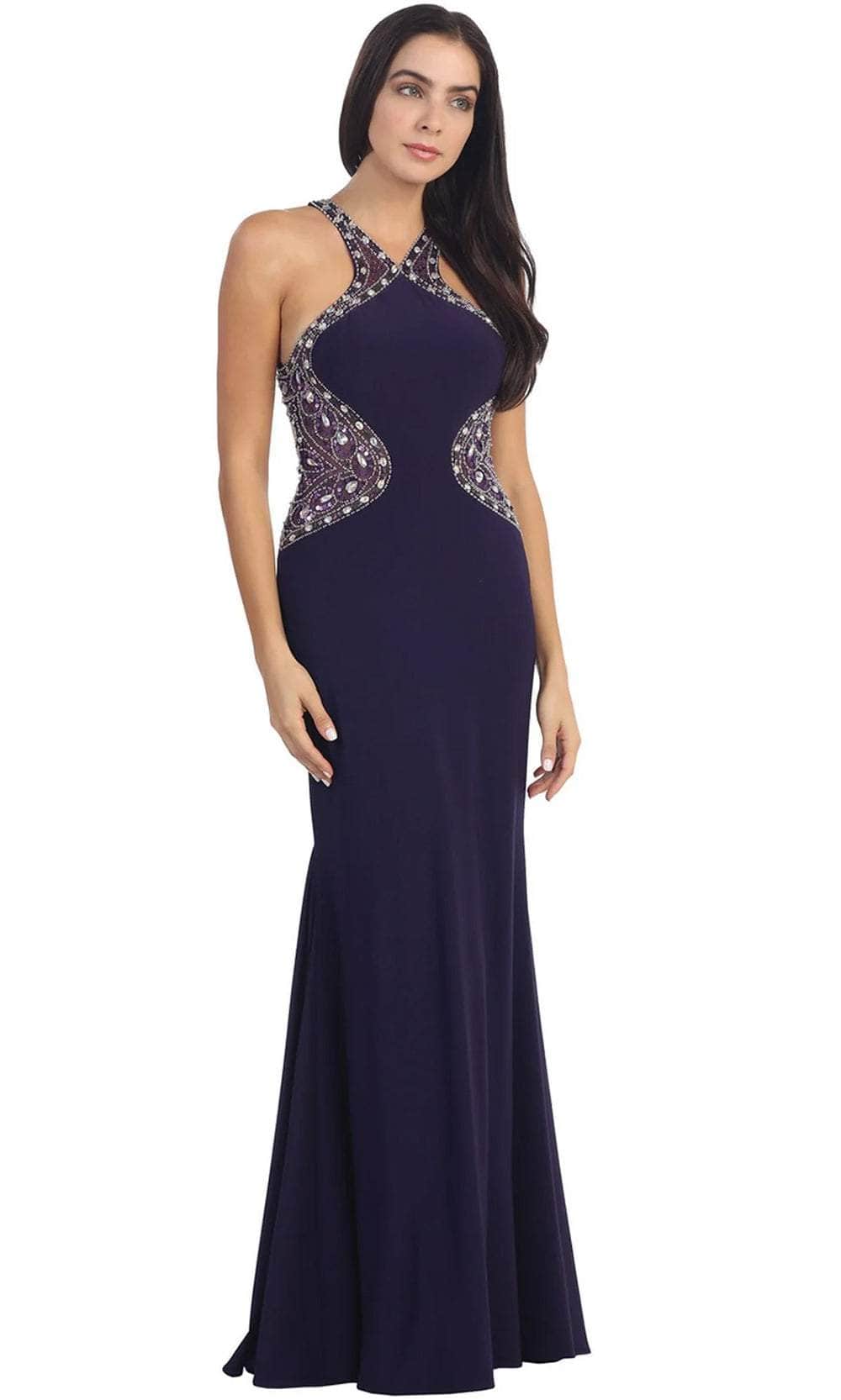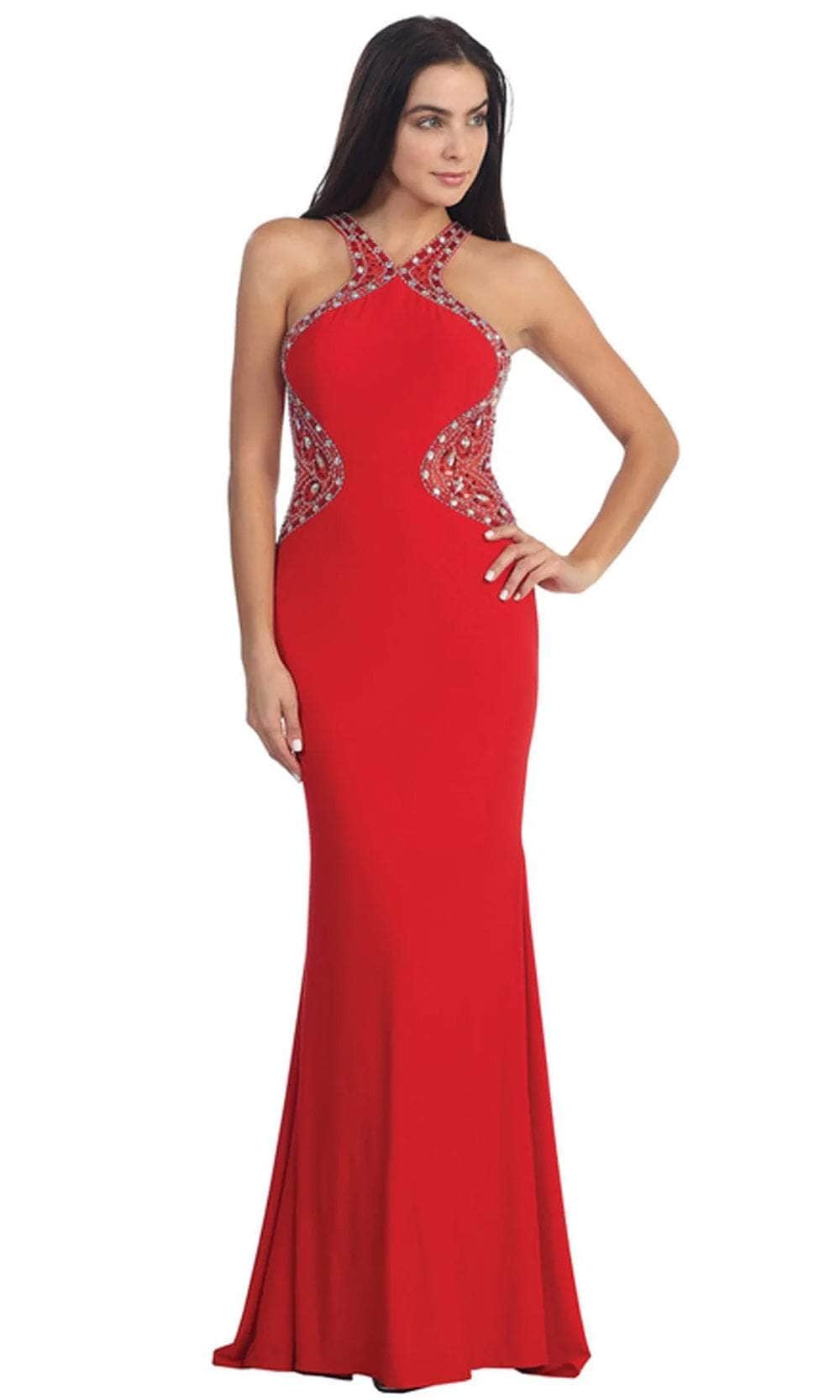 Express your authentic self flawlessly with the exquisite Dancing Queen 9007 creation. Crafted exclusively for you, this stunning design features halter straps on a sleeveless bodice. Intricately detailed with crisscrossing at the back, dazzling rhinestones adorning the sides. The skirt creates a gracefully tailored silhouette culminating in a magnificent sweep train. Prepare to leave a lasting impression, rendering onlookers speechless as you embody sheer elegance in the Dancing Queen 9007 masterpiece. Models are wearing the Black, Purple, and Red colors.
