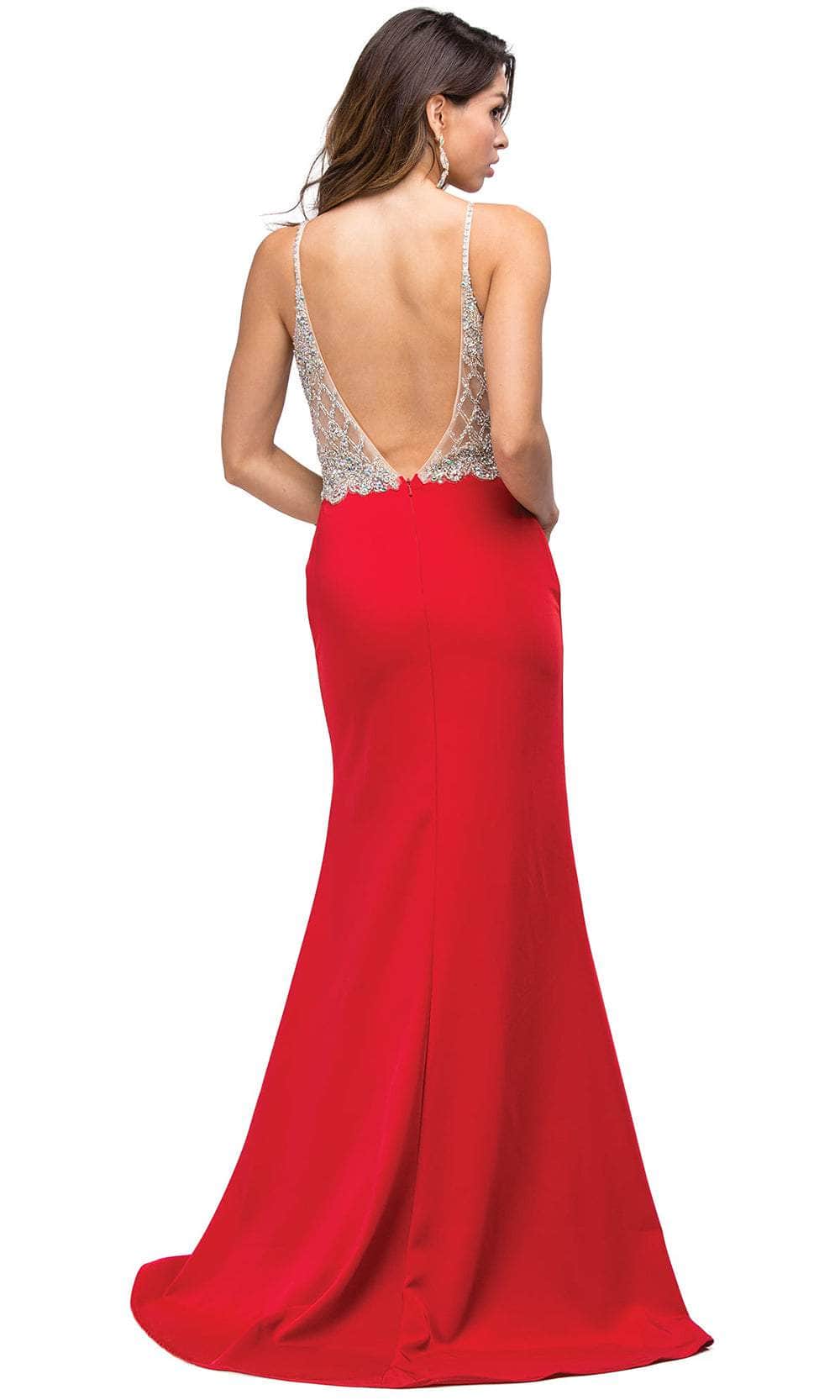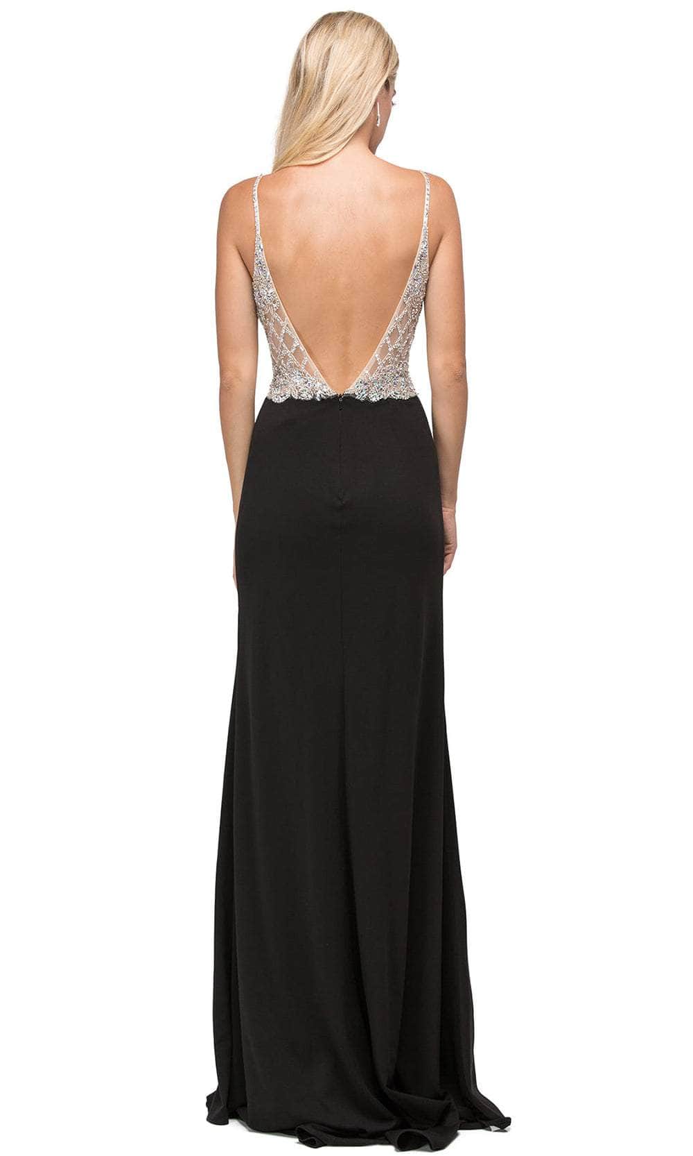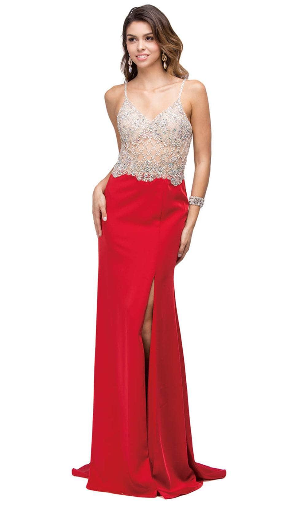 Channel your inner diva in the Dancing Queen 9650 masterpiece. Ornamented with an array of shimmering beads, sequins and lace appliques, this sleeveless design exudes charm and femininity. The spaghetti straps grant you flawless support, accompanied by the v-neckline and breathtaking plunging v-open back. For a flirty element, the sheath skirt parts with a high leg slit on the side. It ends in a full length hem and princess seams to achieve a curve-hugging bodice. This Dancing Queen 9650 long gown is the perfect choice for a prom or a special night. Models are wearing Black, Mocha, and Red colors.