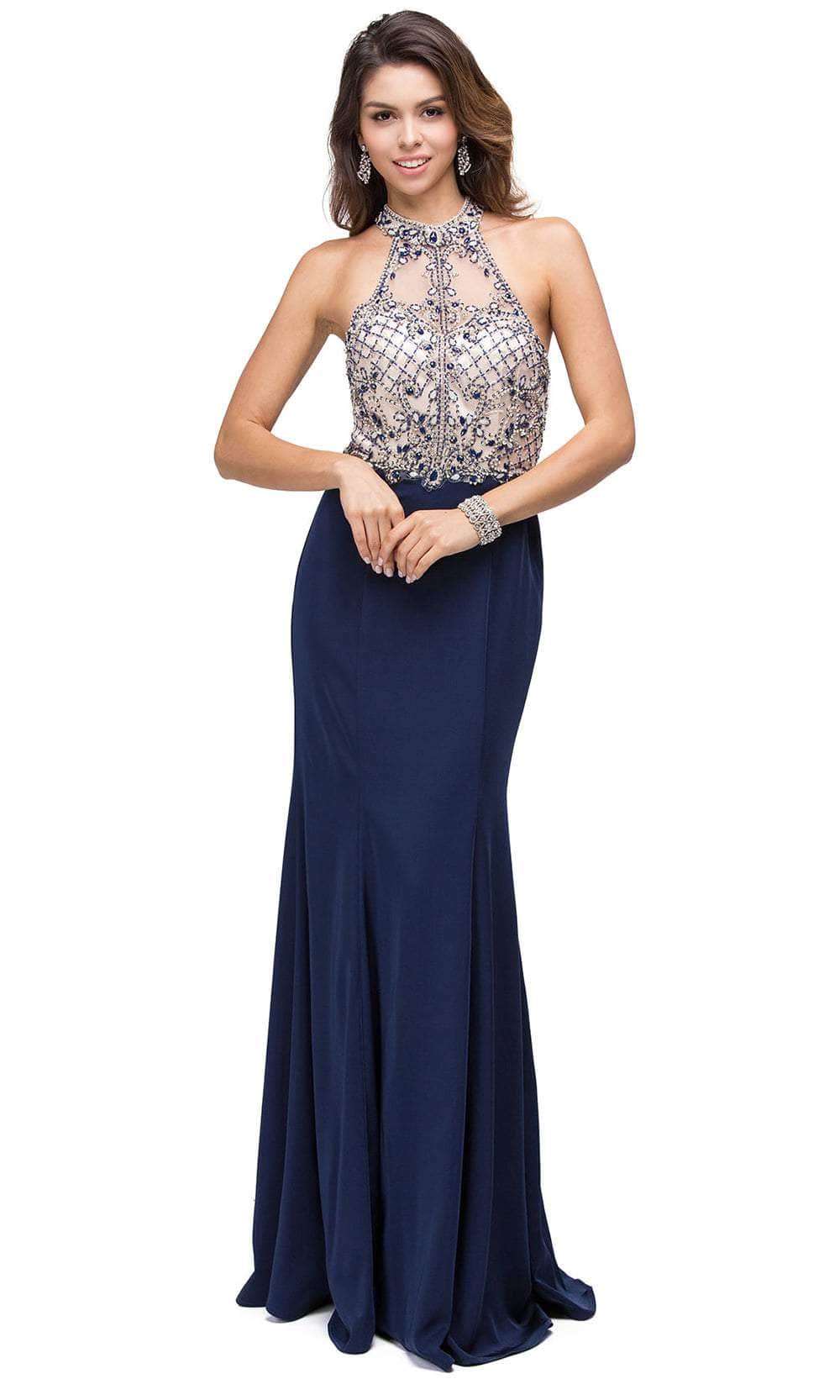 Dancing Queen 9777 - Halter Beaded Illusion Prom Gown