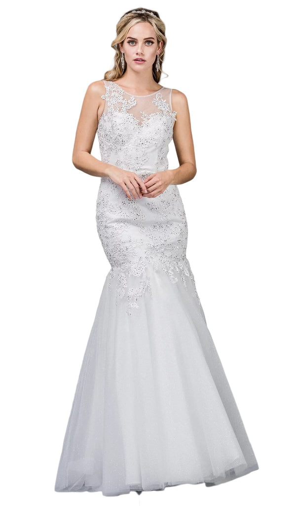 Bring on that commanding beauty with this gown from Dancing Queen 0076. Showcases a sleeveless, bateau neckline with sweetheart lined bodice ornate with beaded lace. The back has a zipper closure and the skirt forms a trumpet silhouette and runs in full length hem. Look impeccably polished as you sweep them of their feet in this dazzling Dancing Queen masterpiece.