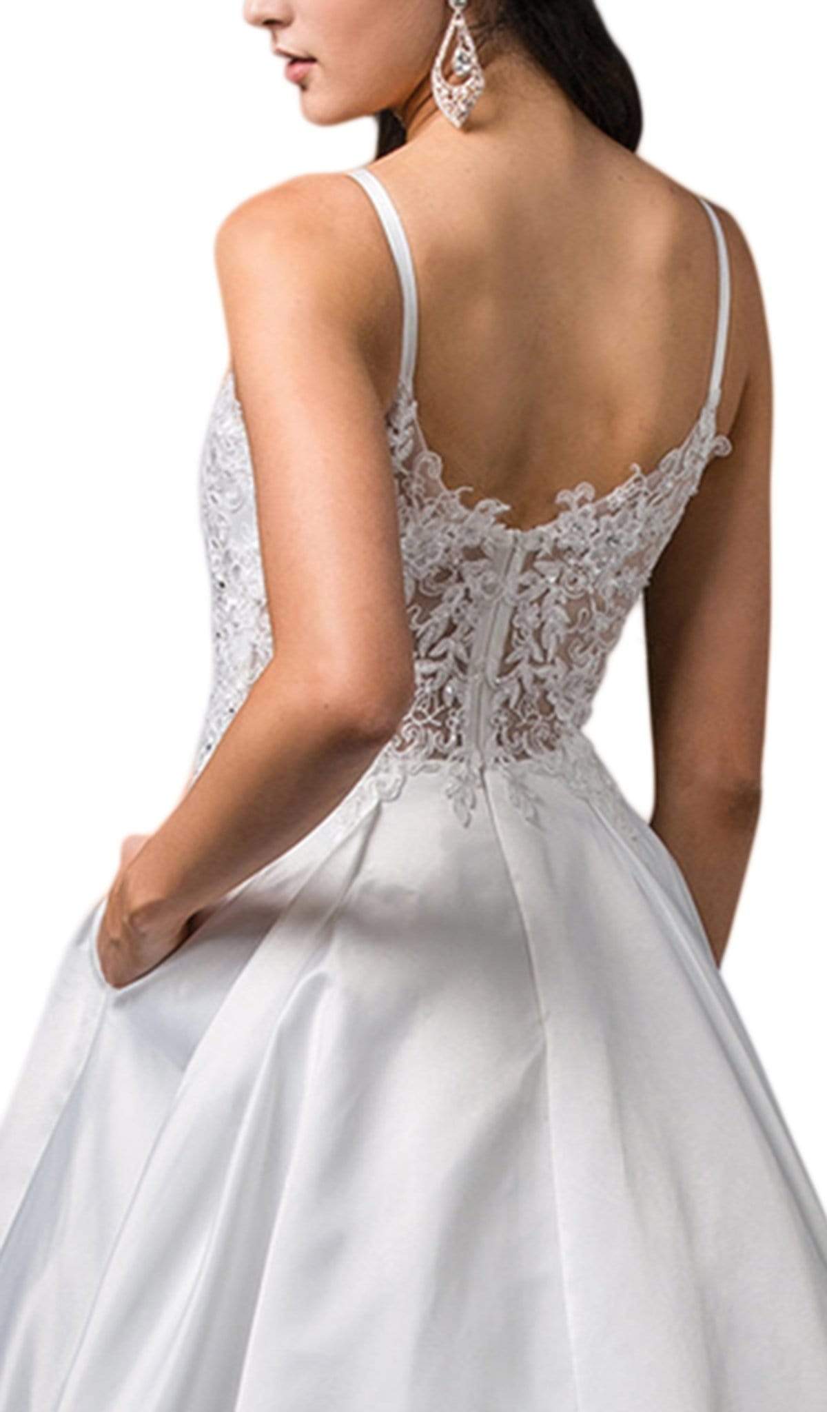 Walk the red carpet in style wearing this stunning gown from Dancing Queen 0081. Enchants in a sleeveless, V-neckline with fitted bodice ornate with appliques and spaghetti straps. The skirt opens in a full length A-line skirt with a sweep train finish. Shimmer and shine in an ethereal gown from Dancing Queen.