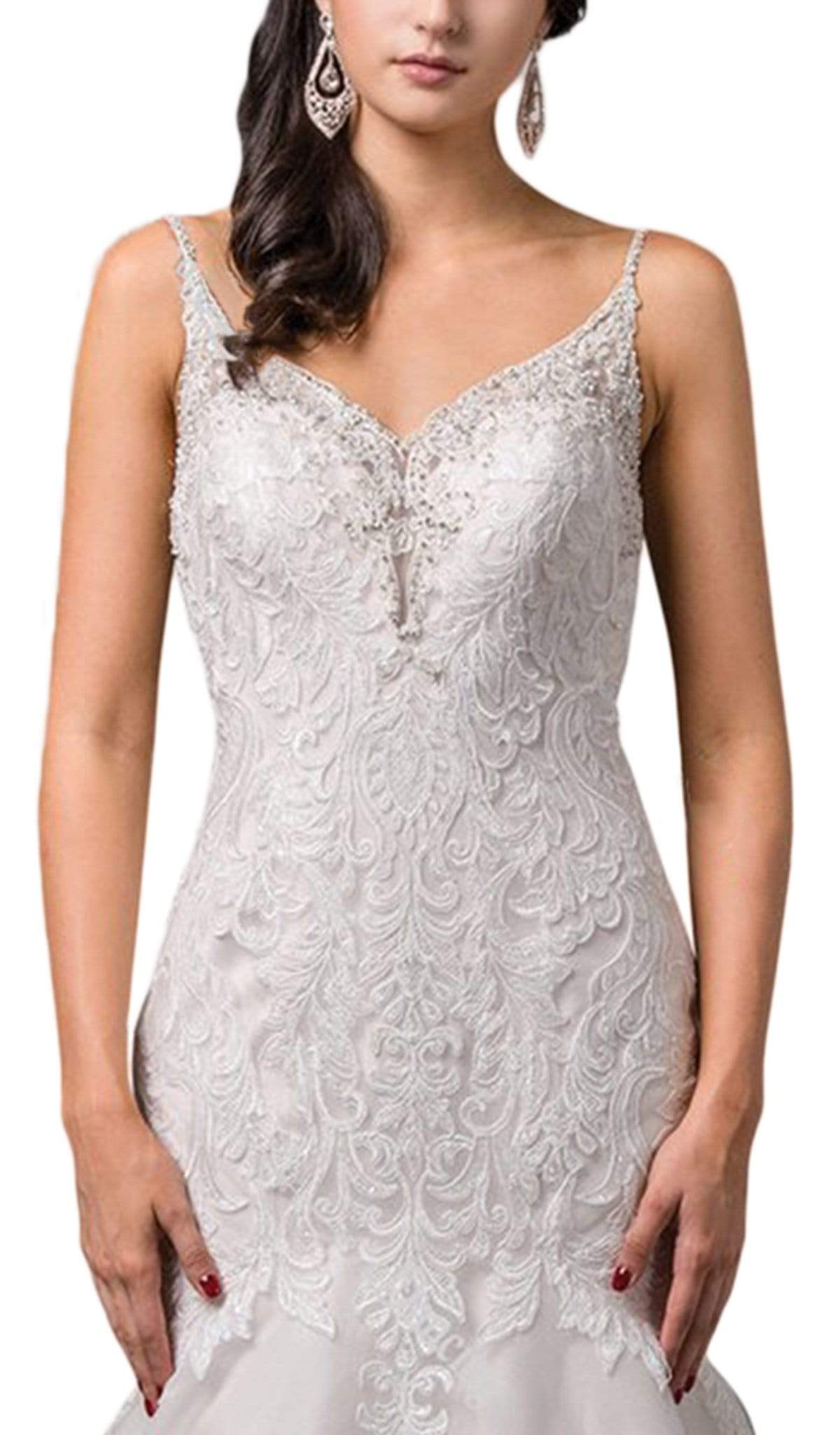 Dancing Queen Bridal - 82 Embroidered V-Neck Trumpet Wedding Dress