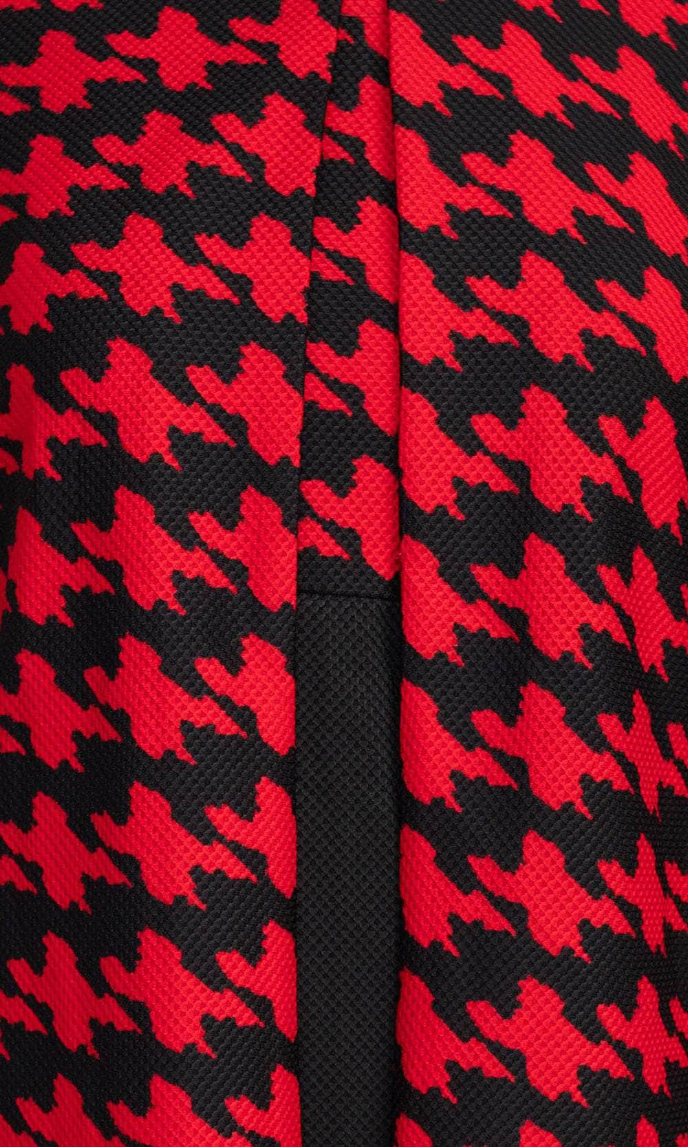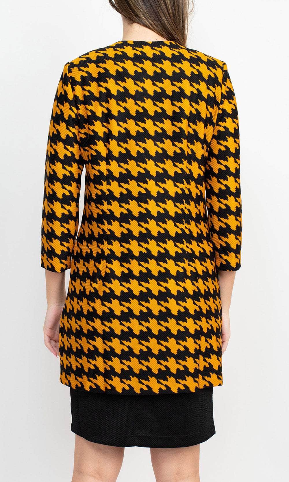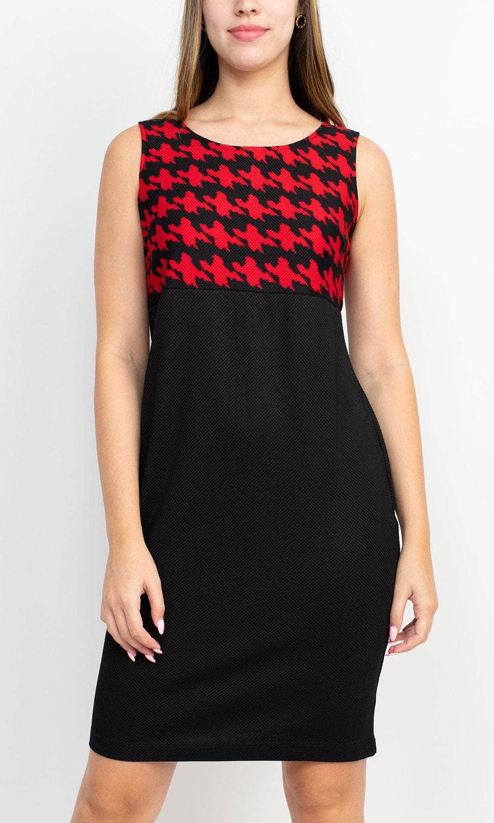 Redefine sophistication when you don this exquisitely made Danny & Nicole 27140M creation. Perfectly tailored with sculpting lines on a knit silhouette, this sleeveless piece flaunts a scoop neckline with vibrant checkered print on the bodice. Styled with an empire cut silhouette and sculpted with an elegant sheath silhouette, this knee length ensemble flourishes a matching long sleeve open jacket with the same pattern. Astound everyone with the gorgeous appeal of this Danny & Nicole masterpiece. Models are wearing the Black Mustard and Black Red colors.