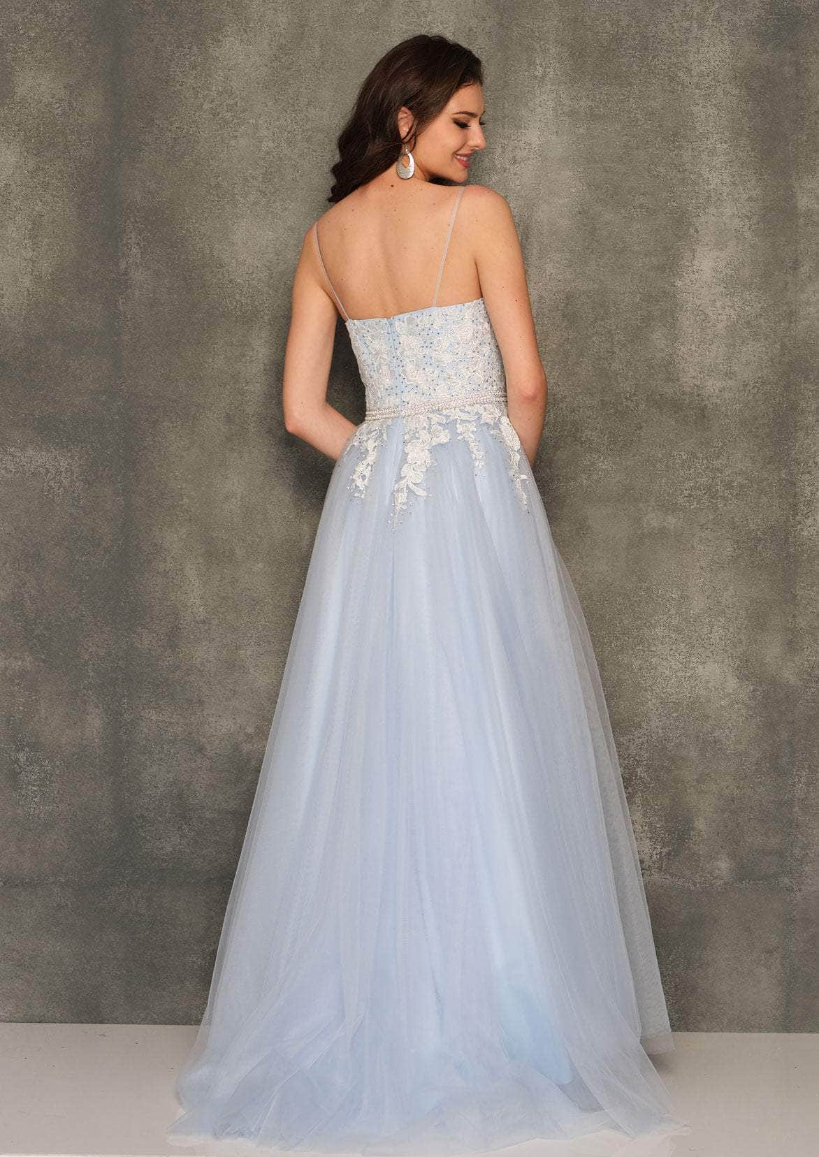 Exude a charm that is meant to mesmerize the elite crowd in this gorgeously Dave & Johnny 10736 masterpiece. This charming ensemble features a straight-across neckline and mid-open back held by spaghetti straps. A pearl embellished belt draws attention to the natural waist while a trailing lace embroidery embellishes the bodice. The layered tulle skirt reveals an A-line silhouette that beautifully streams in a full-length hem with a sweeping train for added drama. The Dave & Johnny long gown will let you celebrate that divine feminine beauty! Models are wearing the Ice Blue, Emerald and Ivory colors of the dress.